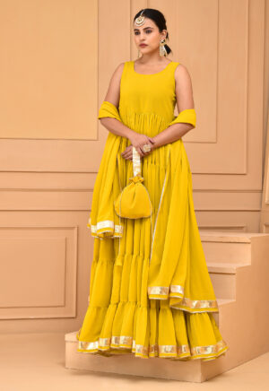 Mustard Yellow Floor Length Georgette Anarkali Set
