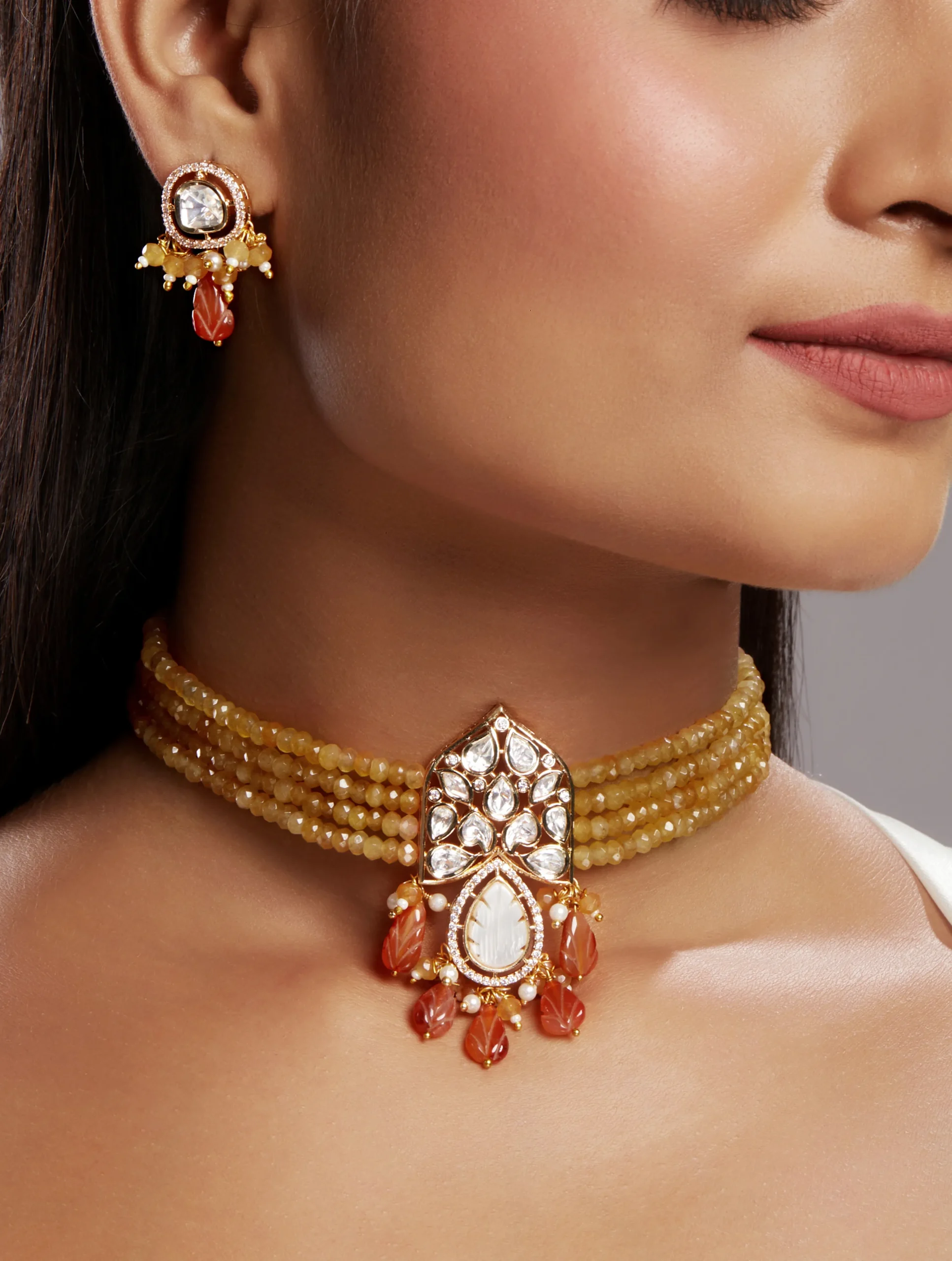 Agate Kundan Polki Choker Set with Mother of Pearl and Onyx Tumble Drops