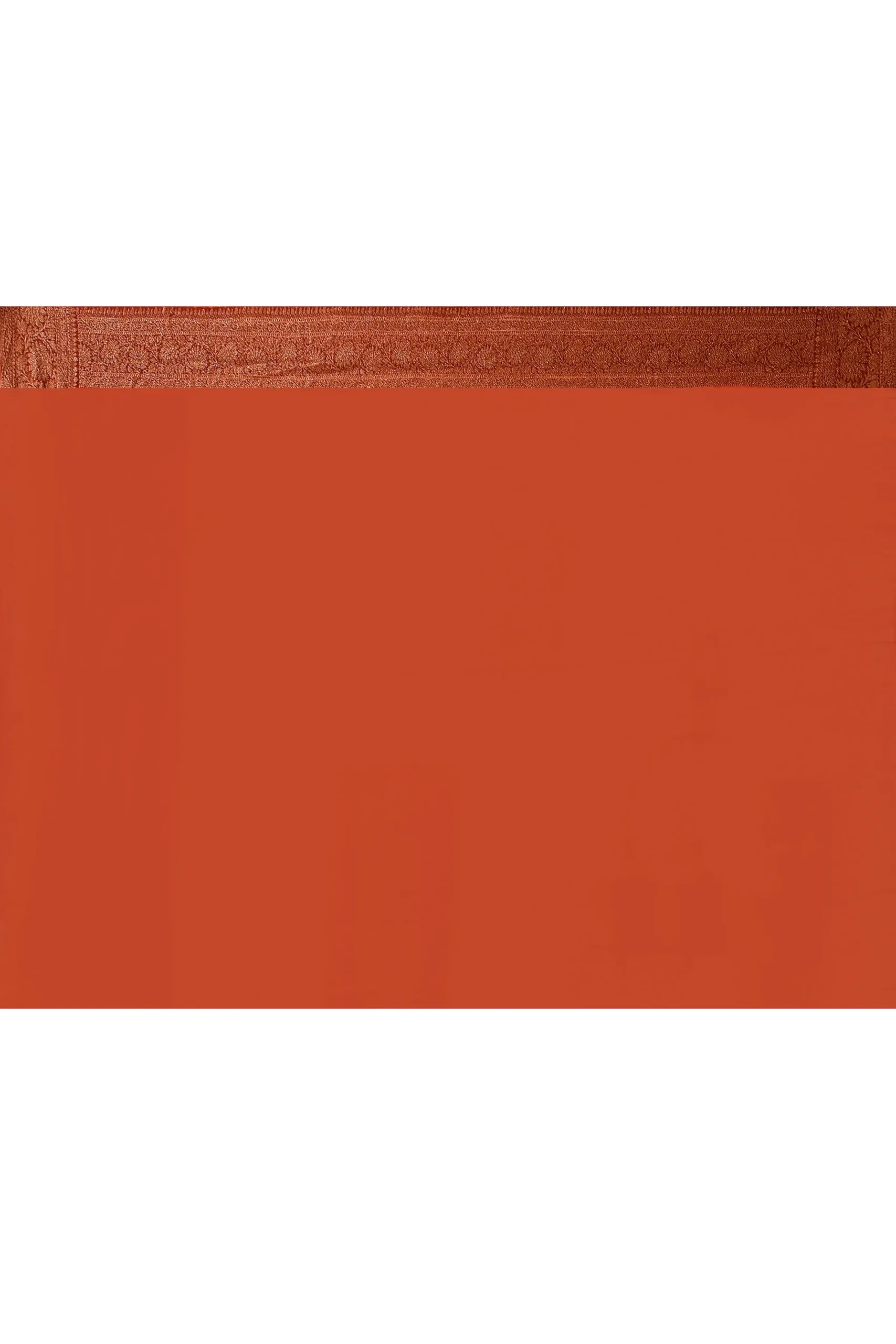 Coral Orange Pure Katan Silk Banarasi Saree with Woven Motifs from Golden Muslin By Naaritva Banaras