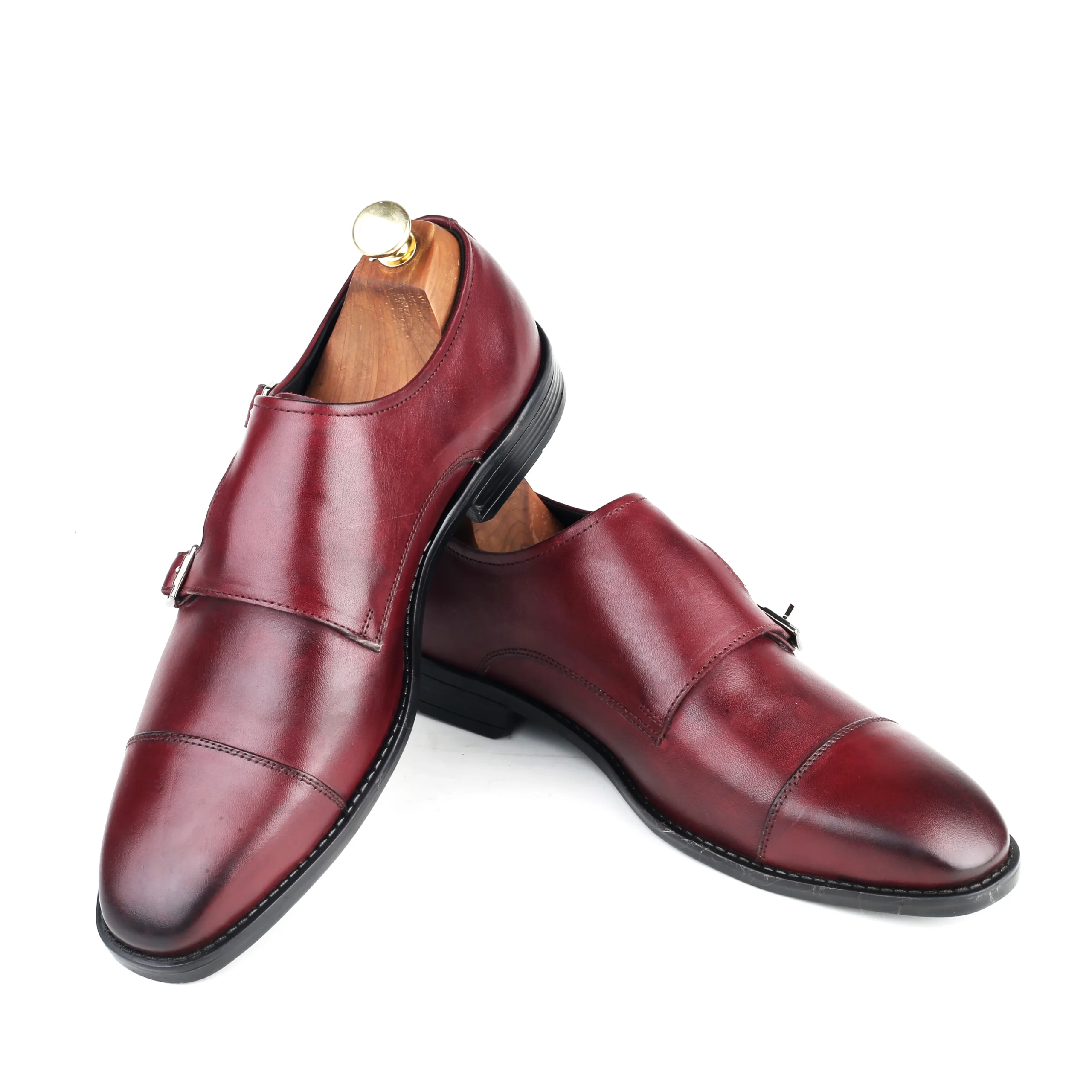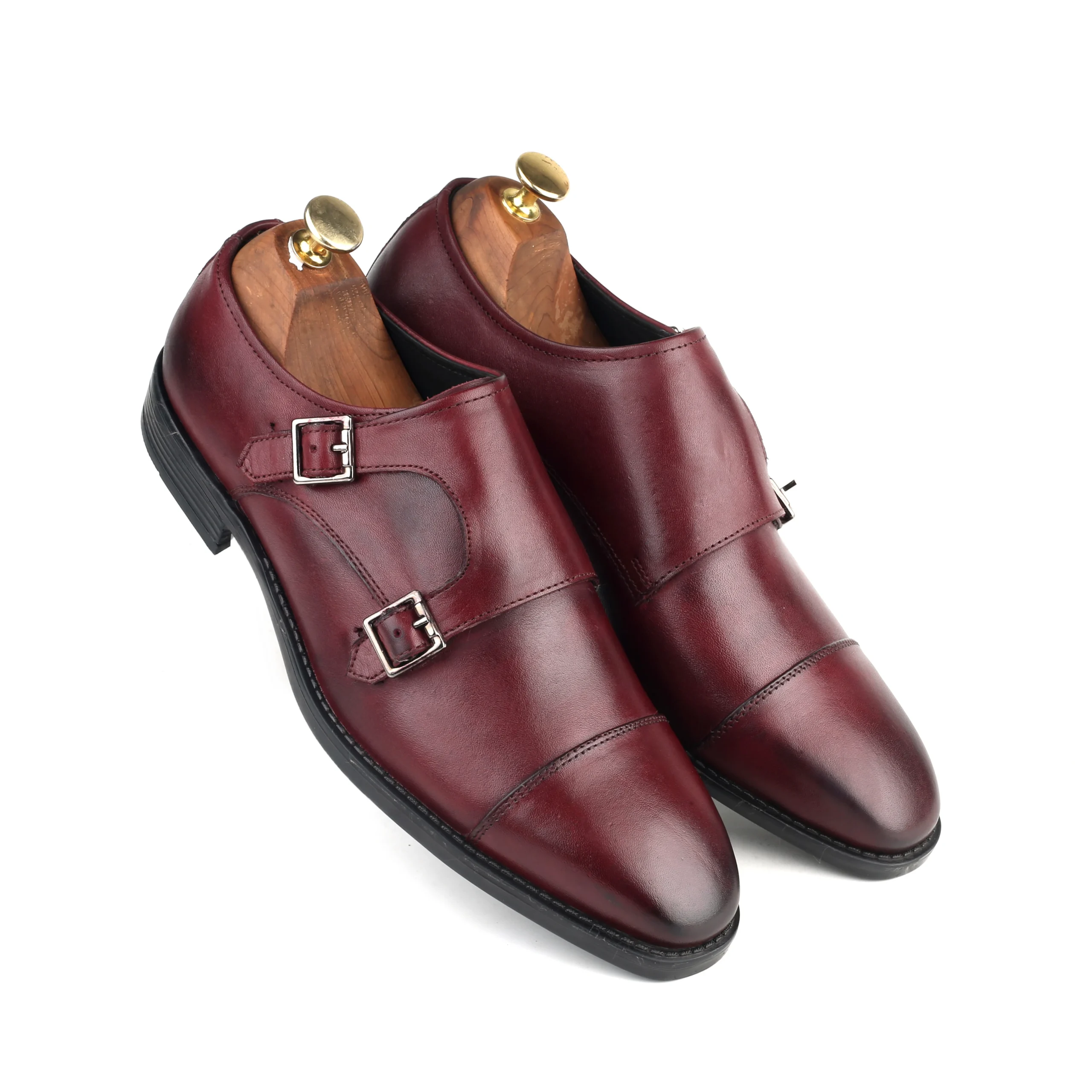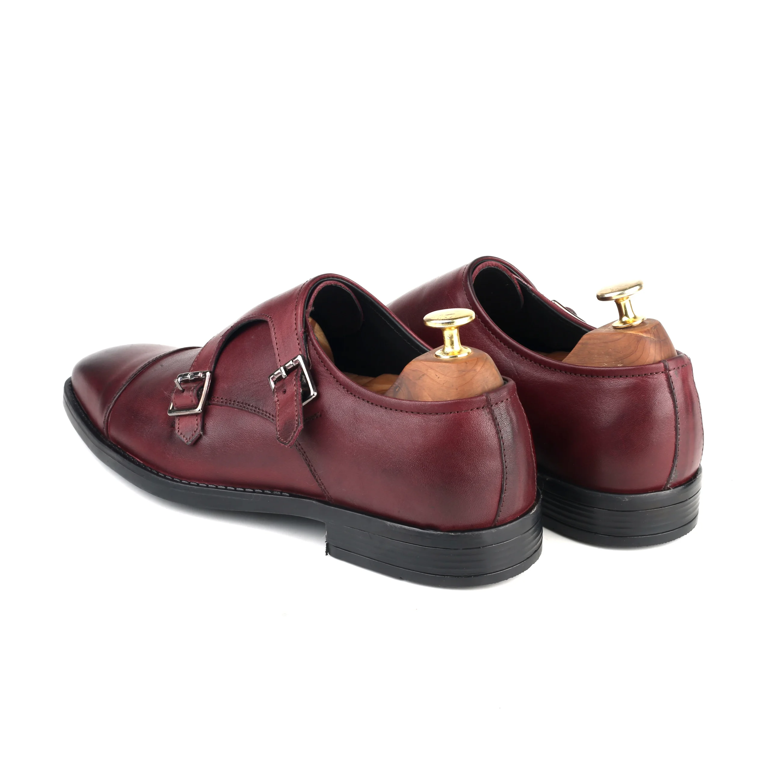 The Anzio Bordo Double Monk Strap Shoes are a sophisticated addition to men’s wear, crafted from premium Argentine bovine leather with a rich bordo finish and elegant Italian-inspired design. Featuring a classic double monk strap silhouette with metal buckle detailing, these shoes offer a refined and timeless look ideal for formal and semi-formal occasions. The durable anti-slip rubber sole ensures excellent grip, comfort, and stability, making them a stylish yet practical choice for the modern gentleman.