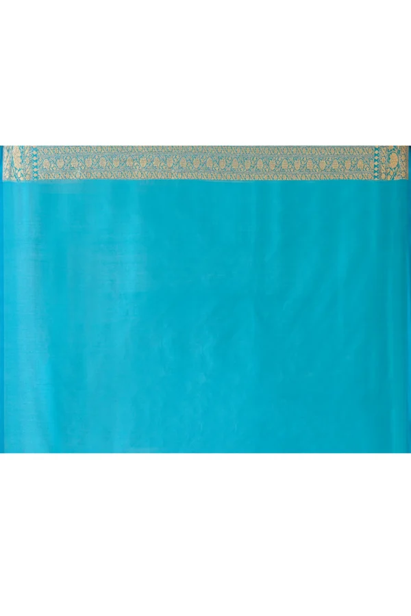 Introducing an Aqua Soft Silk saree that blends vibrant colour with timeless craftsmanship. The rich aqua base is adorned with intricate floral jaal and traditional motifs woven in silver zari, complemented by a statement antique gold border and an elaborately woven palla in classic Banarasi patterns, highlighted with antique gold zari. Comes with a matching running blouse piece.
