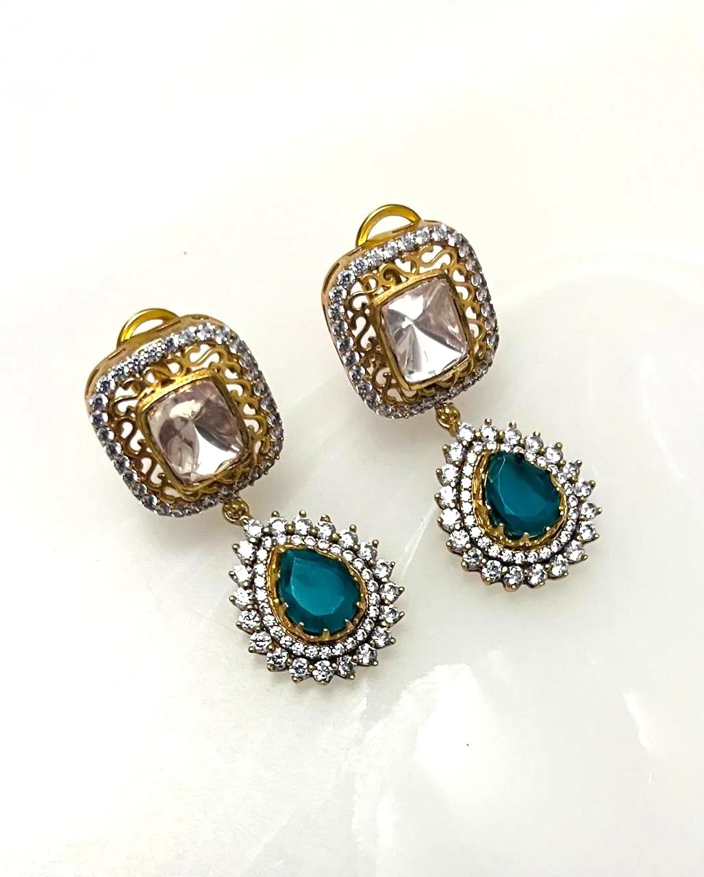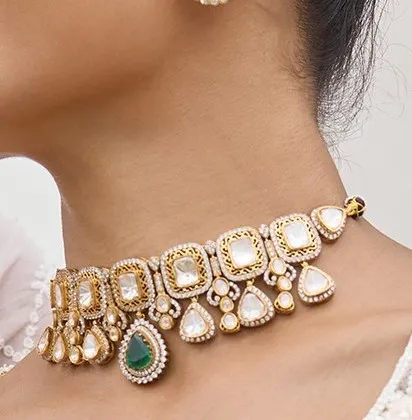 Style the Ayira necklace with embroidered lehengas, silk sarees, or elegant festive ensembles to highlight its emerald brilliance. Pair with matching statement earrings and a sleek bun or soft waves for a refined, graceful look suitable for weddings and evening celebrations.