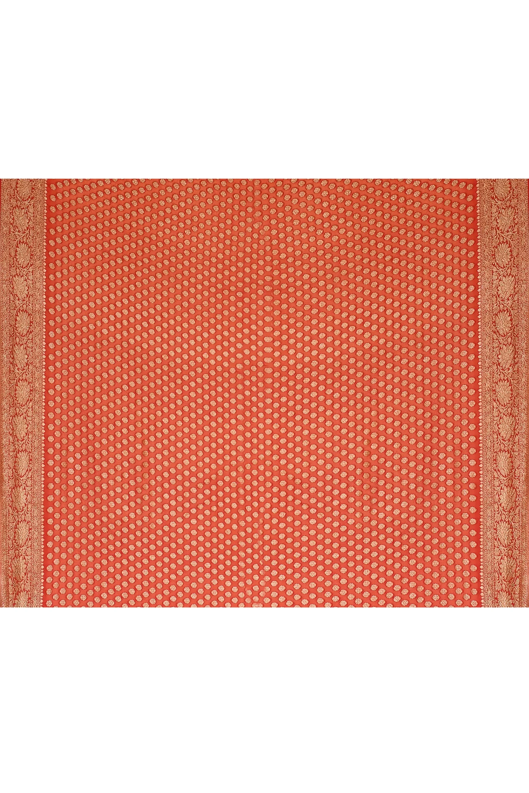 Coral Orange Pure Katan Silk Banarasi Saree with Woven Motifs from Golden Muslin By Naaritva Banaras