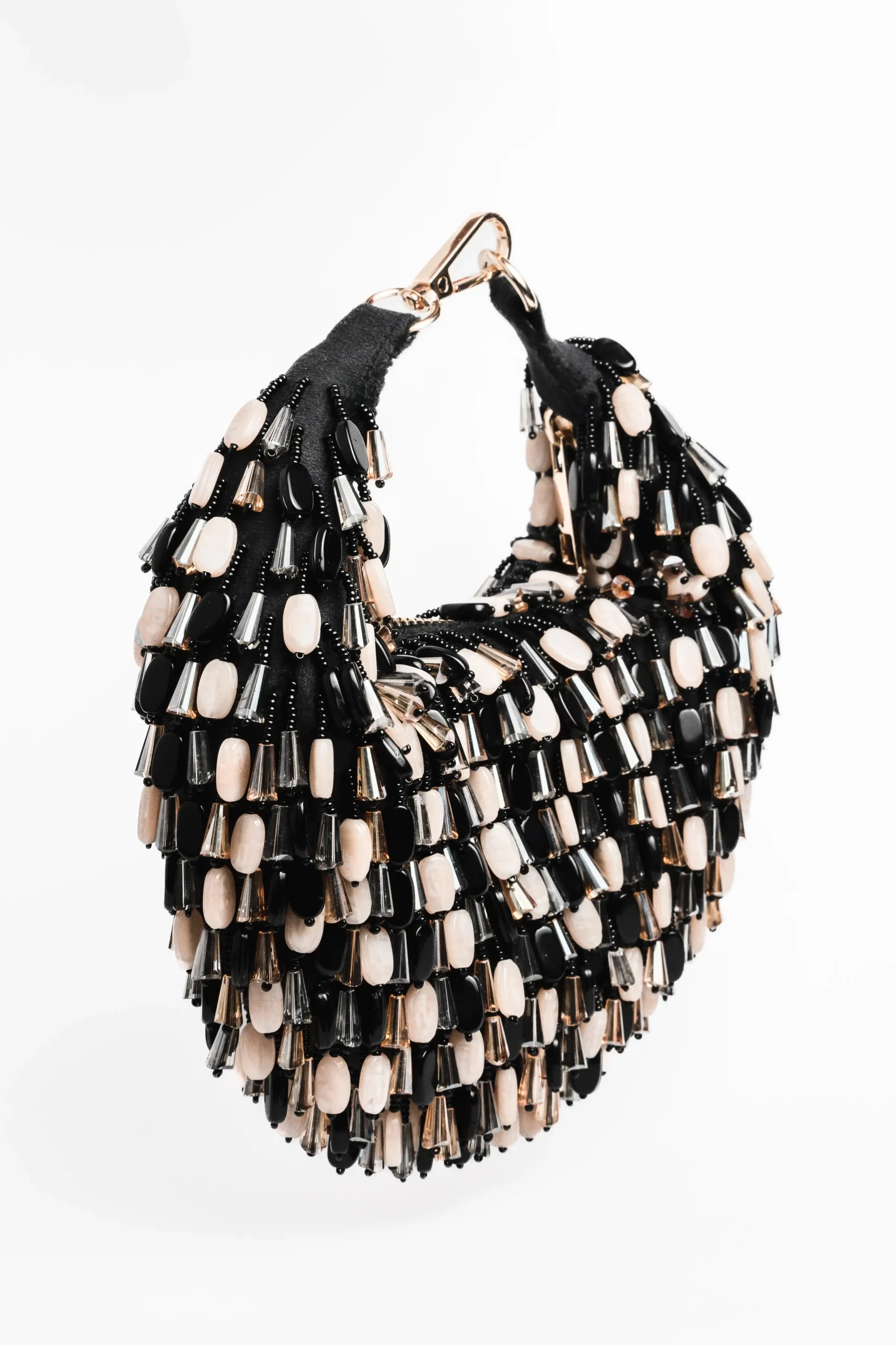 Black and Cream Tasseled Potli with Beaded Tassels and Modern Glam