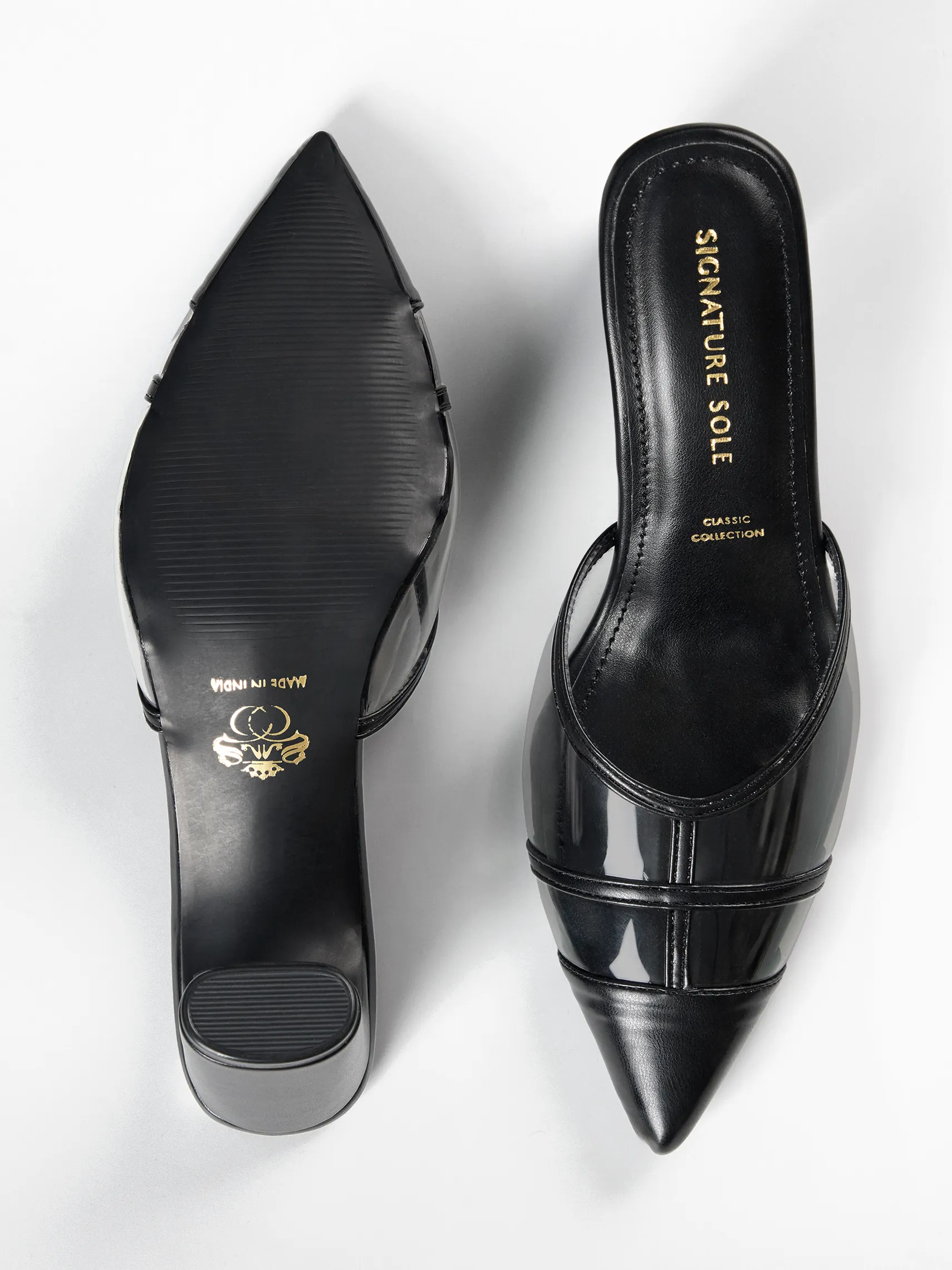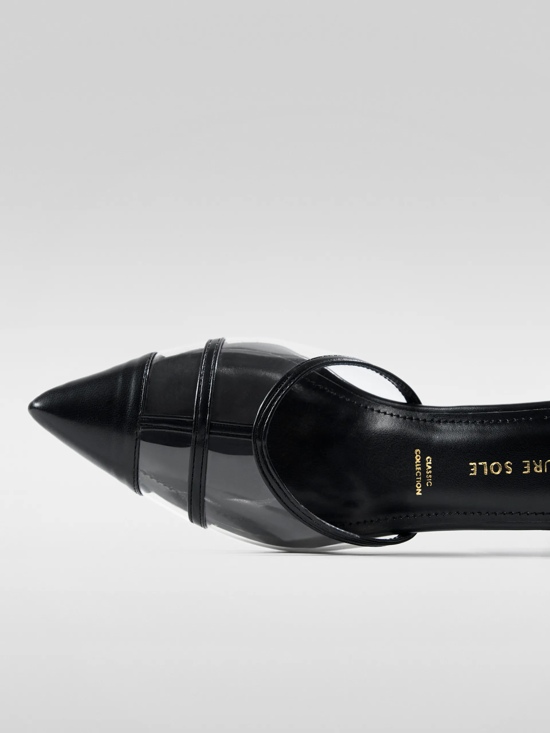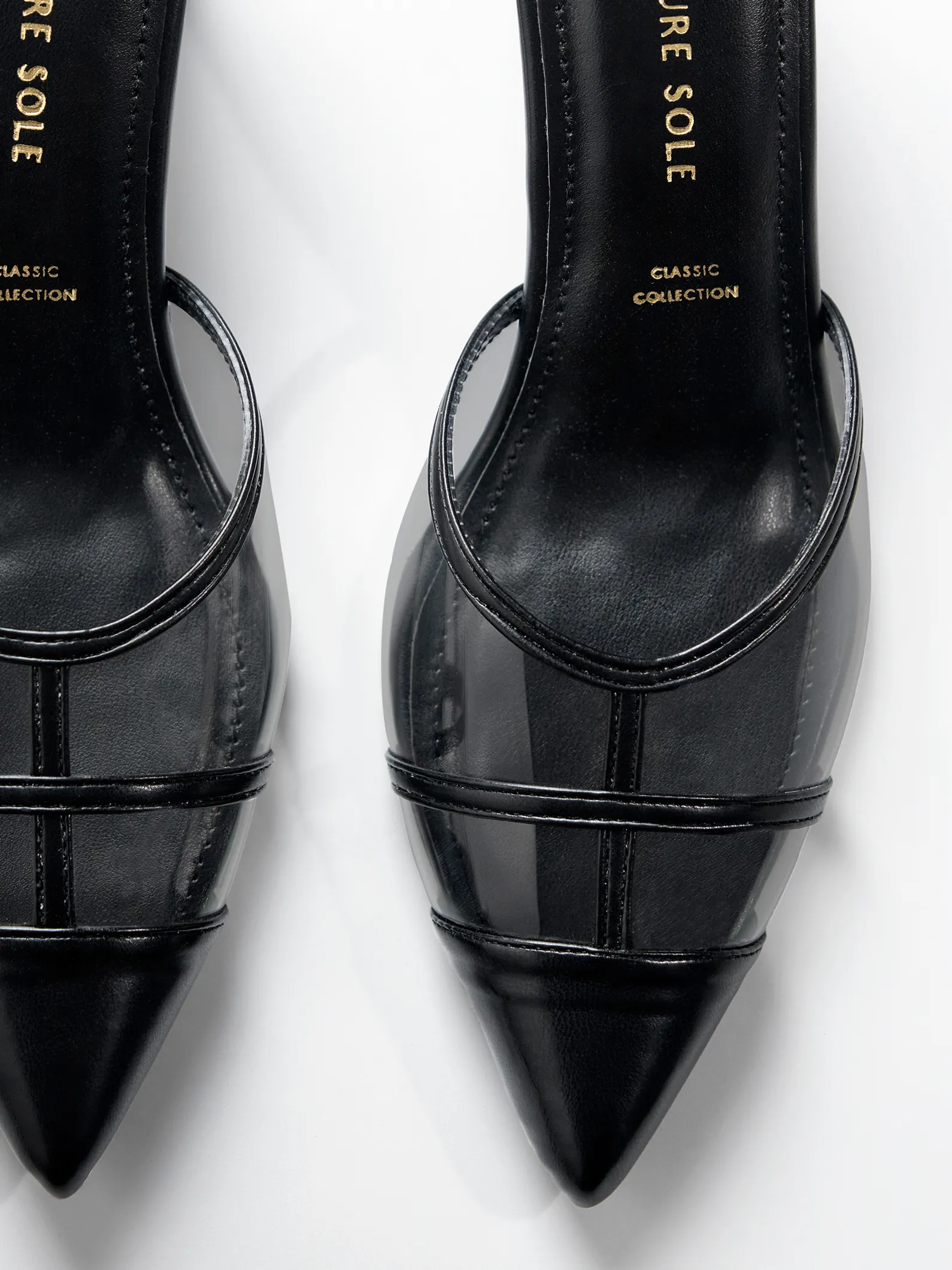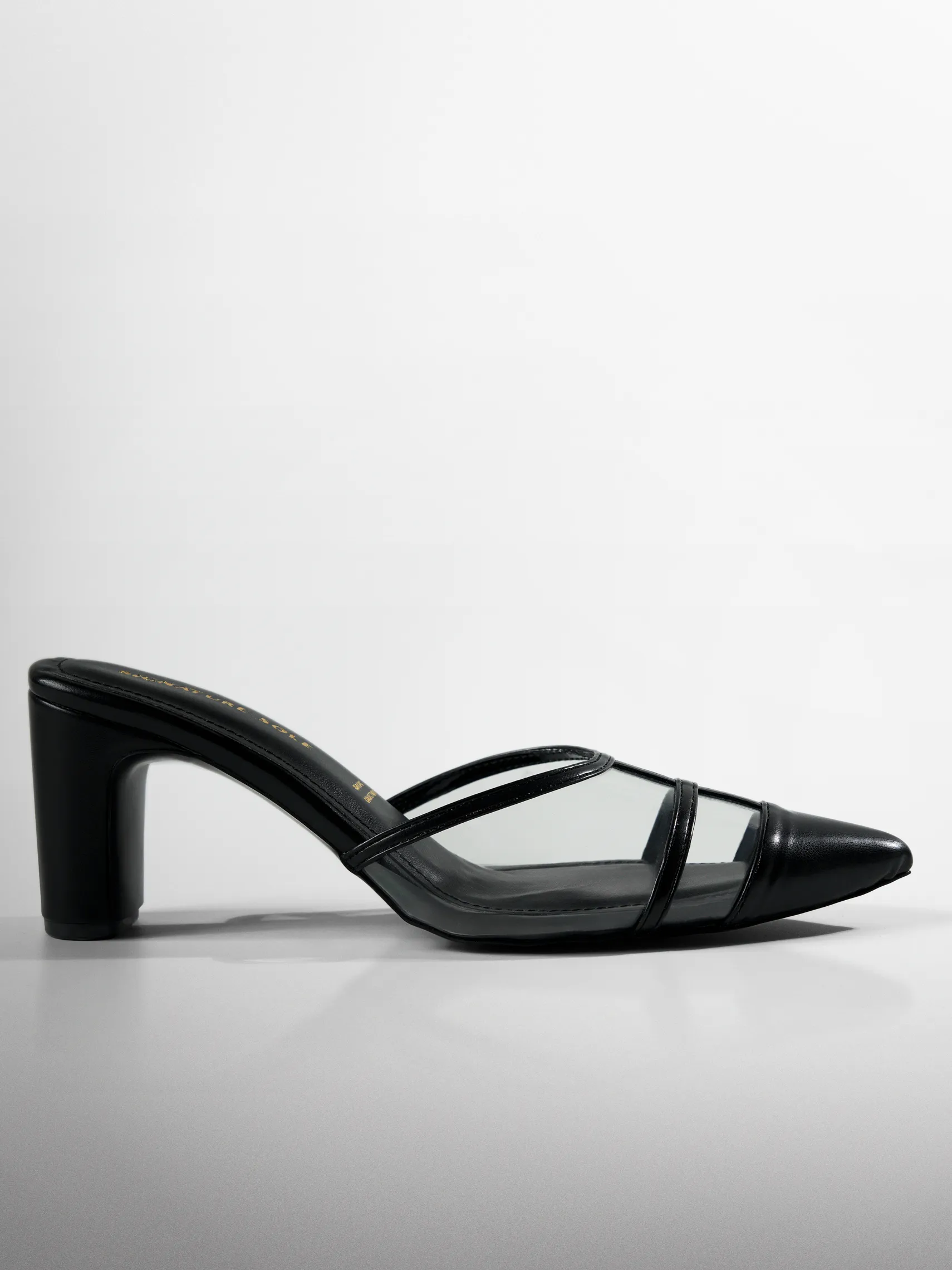 Craft : Horizontal band cage construction on vamp | Transparent panel | Classic CollectionMaterial : Faux leatherWork of : 38 Hours