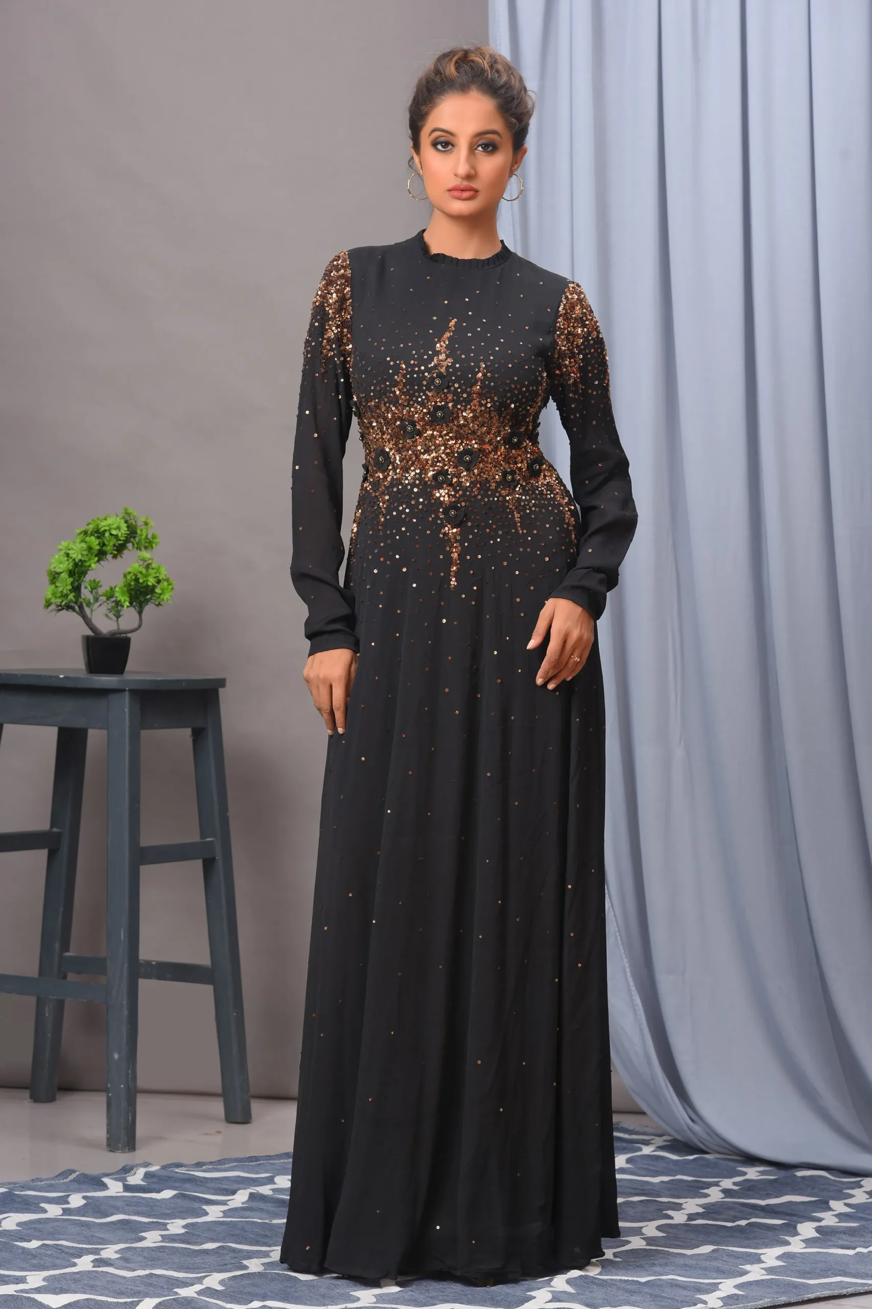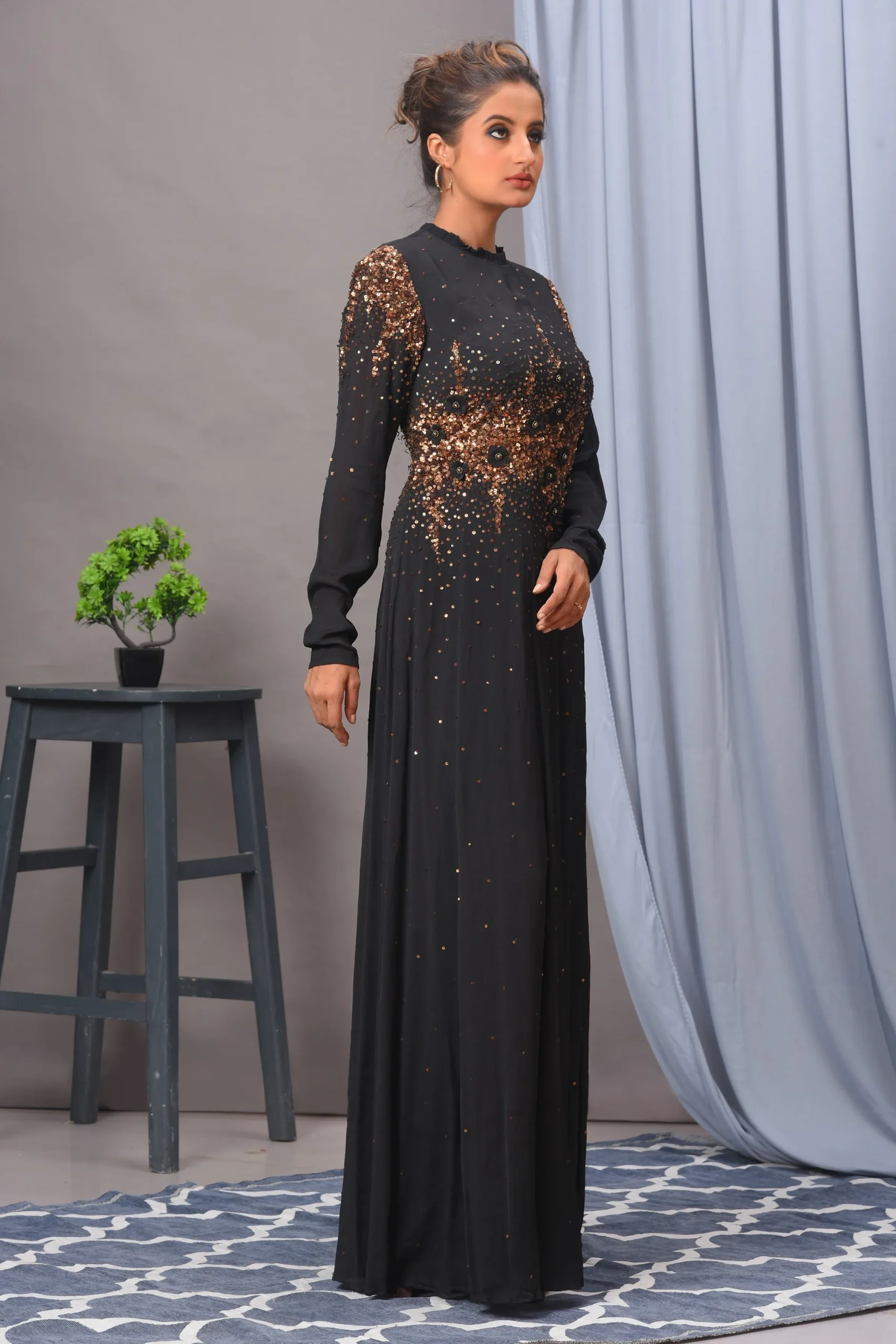 Black Velvet Sequin Embellished Gown