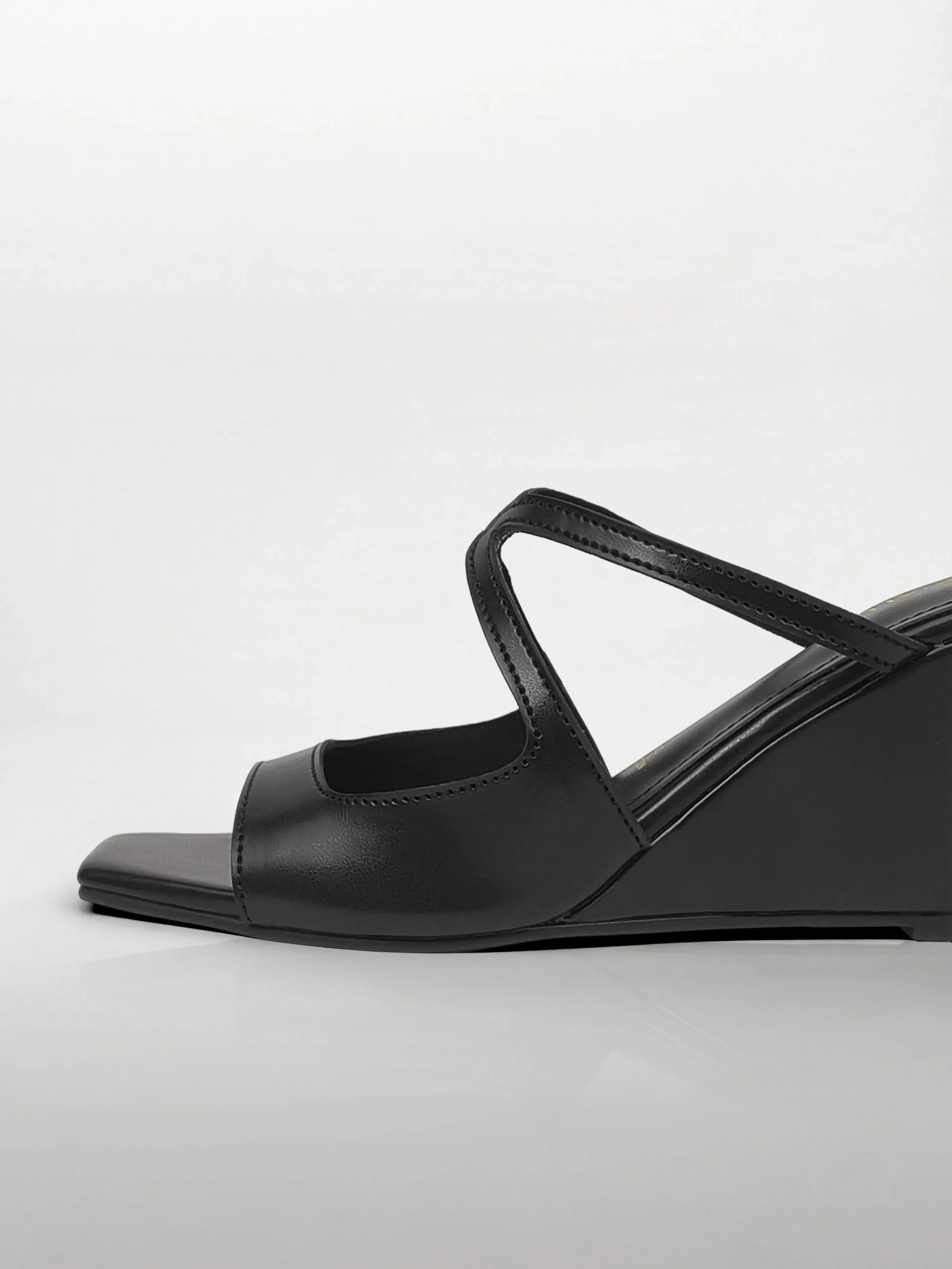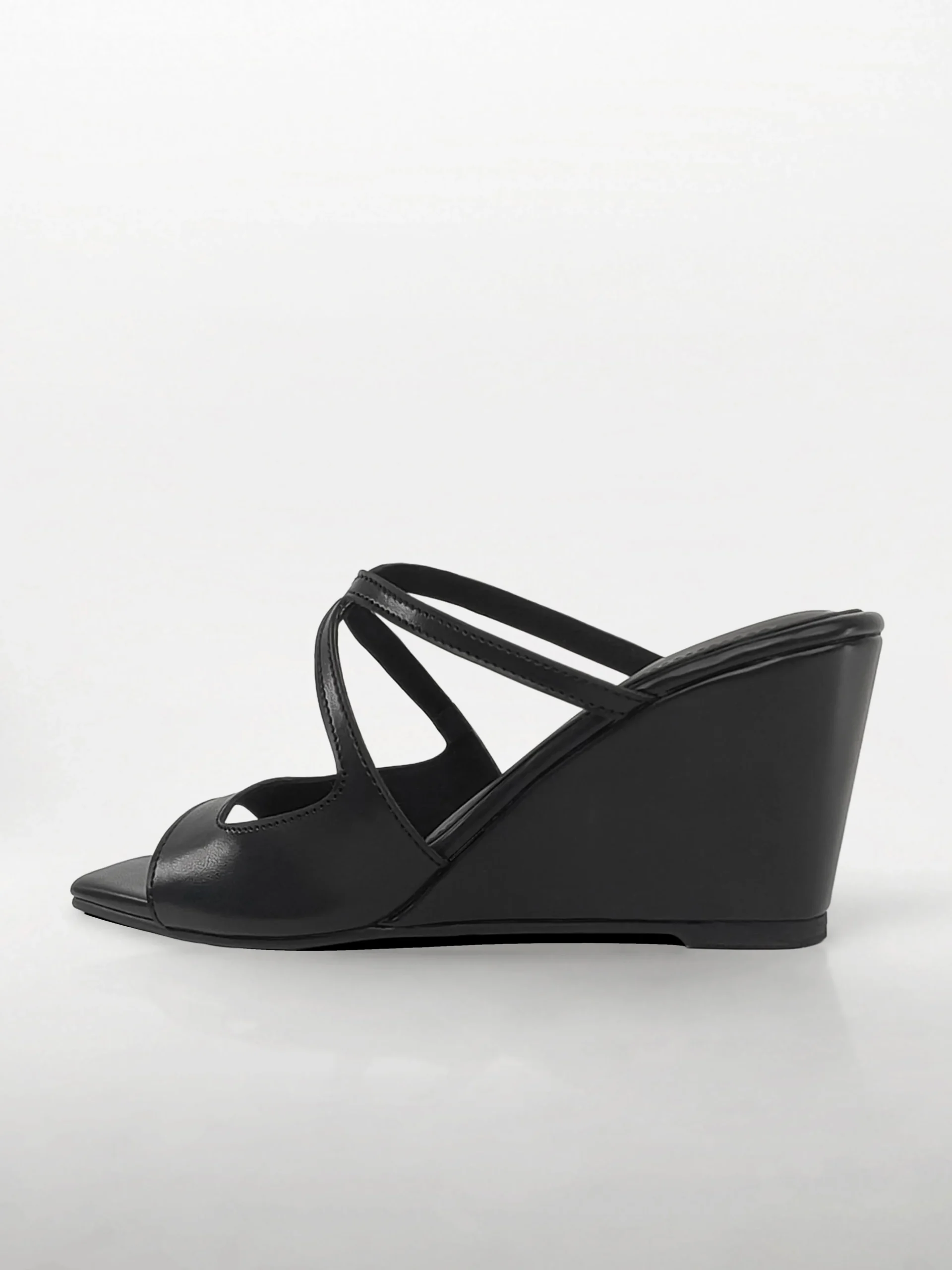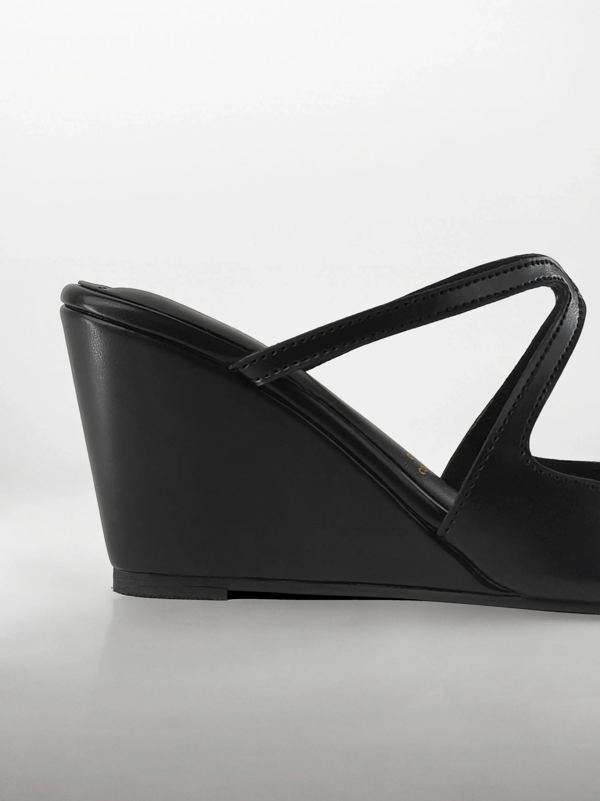 Black Cross-Strap Wedge Heel Mule – Heels for Women & Mules for Women