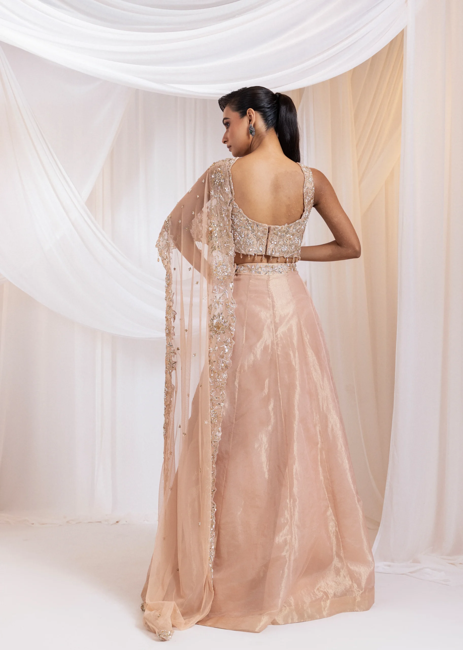 Nude Pink Opaline Sequin Couture Lehenga
