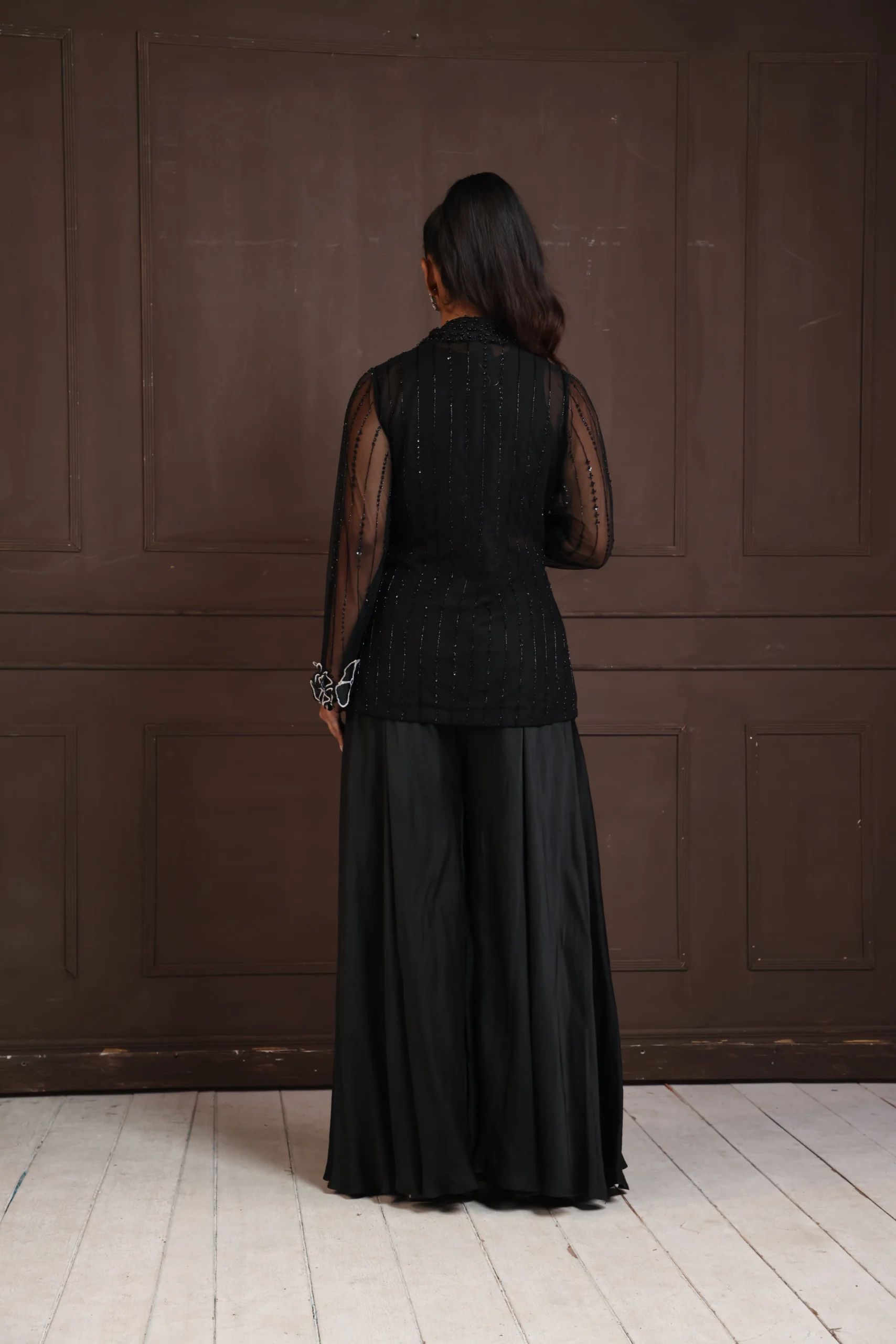 Black Crepe, Organza Embroidered Evening Co-ord Set