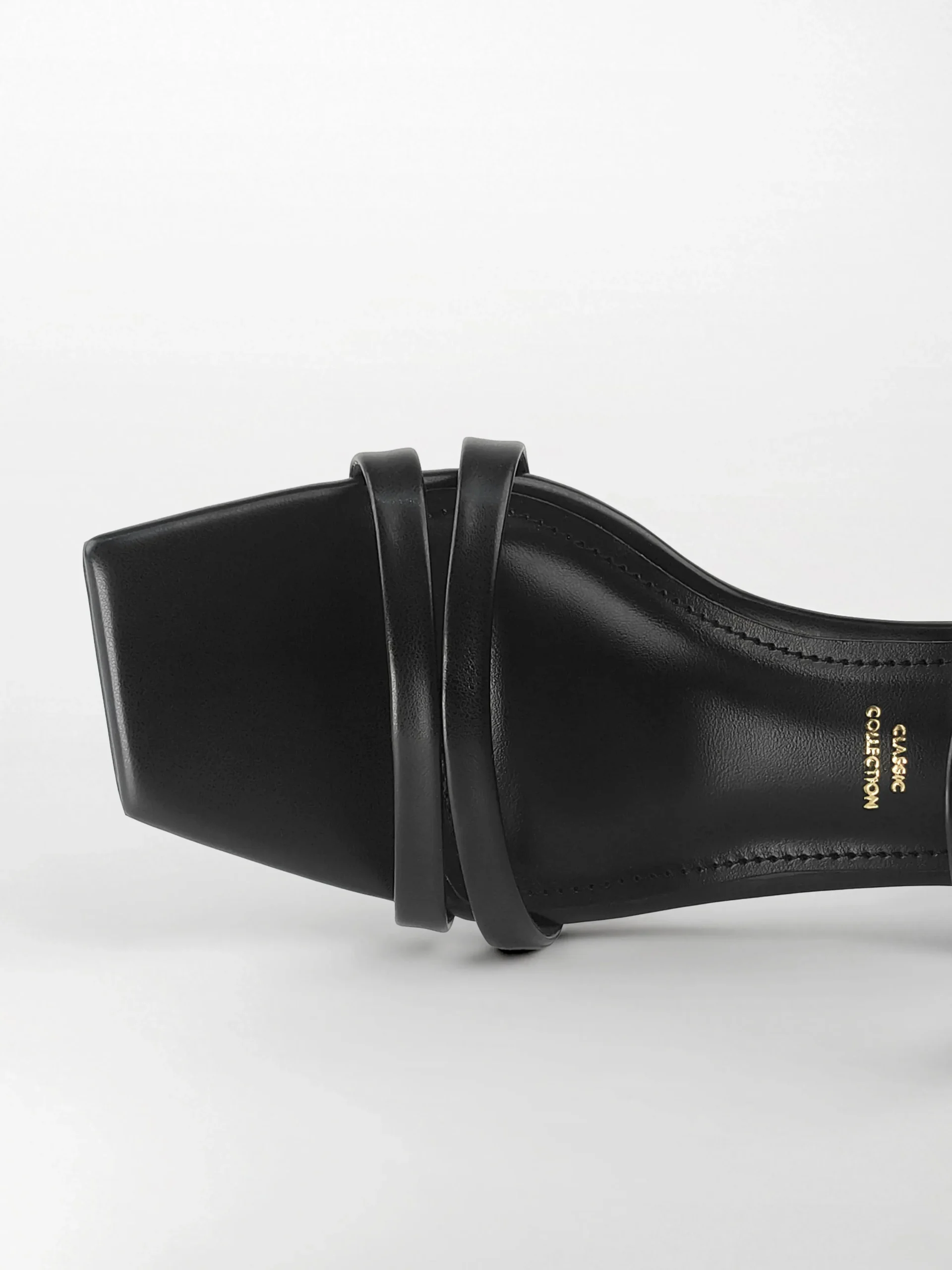 Craft : Multiple thin rounded straps with ankle loop | Tonal black constructionMaterial : Faux leatherWork of : 32 Hours