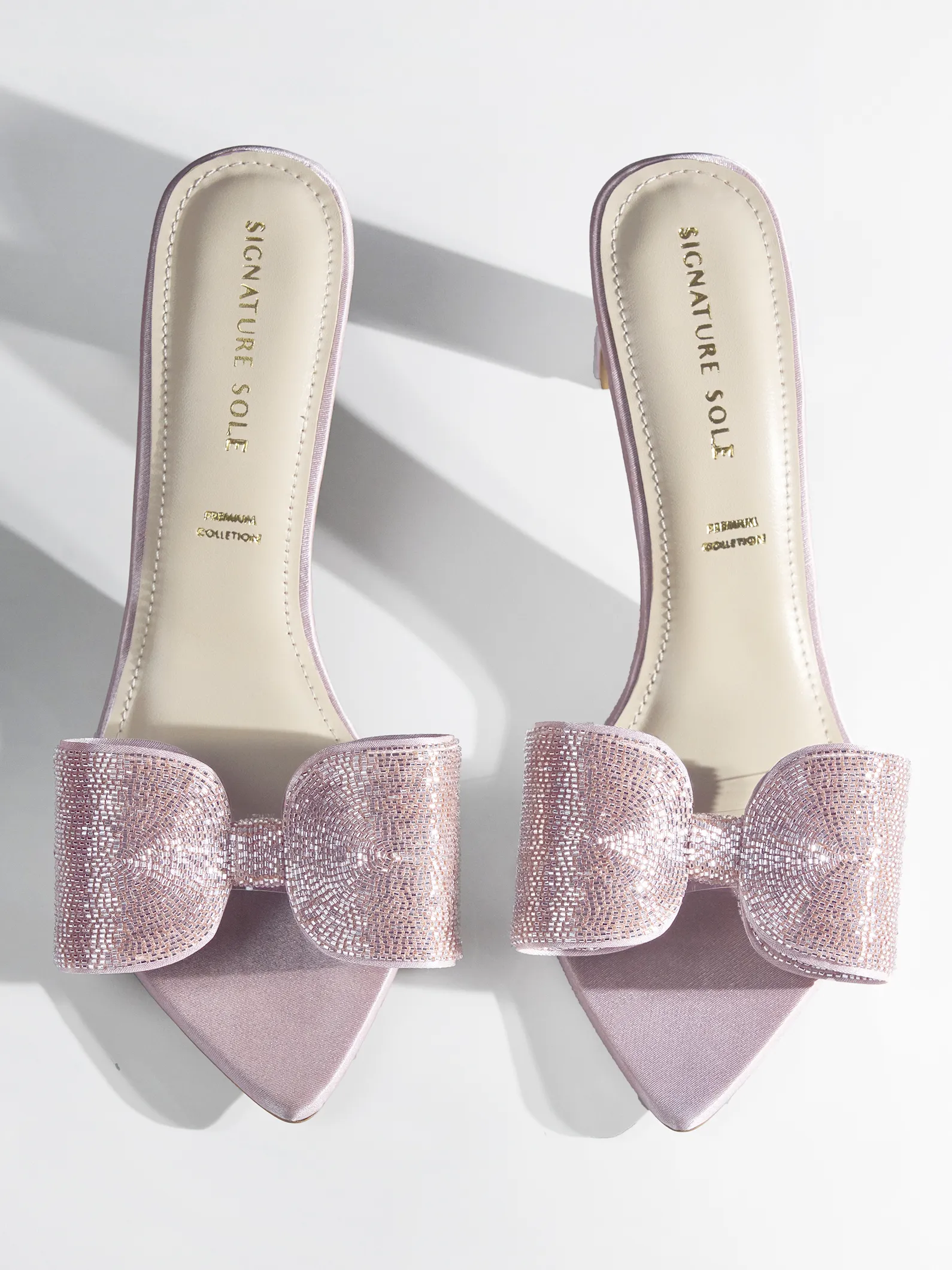 Blush Crystal Bow Block Heel Mule – Block Heels Women & Embellished Heels for Women
