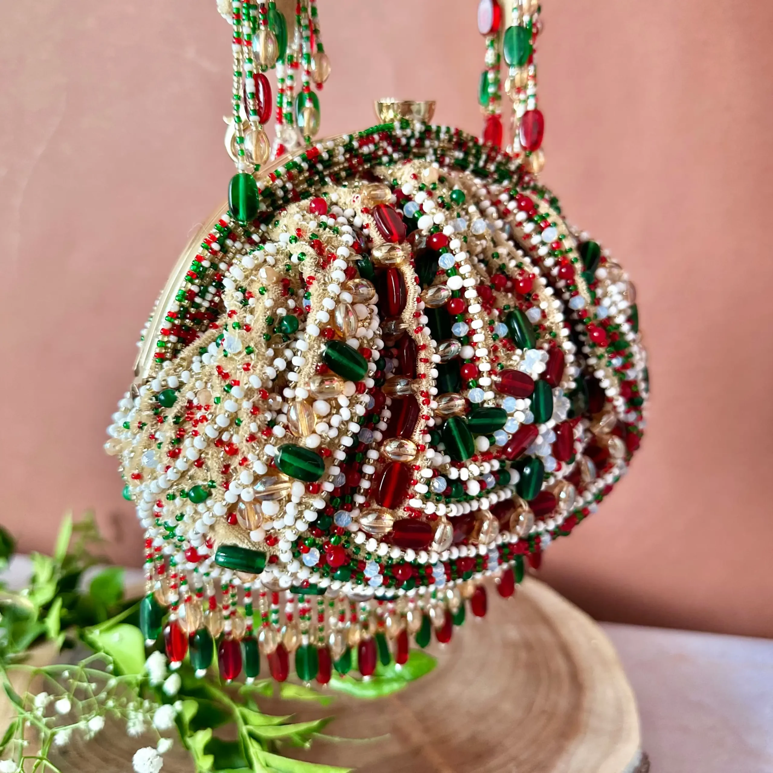 Bold Colour Beaded Clutch with Studded Frame and Beaded Handle Finish