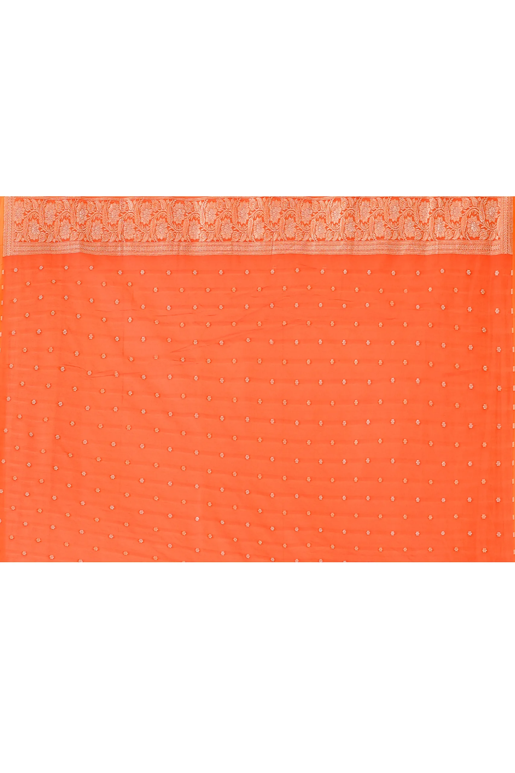 Coral Orange Banarasi Soft Silk Saree with Antique Silver Zari Motifs