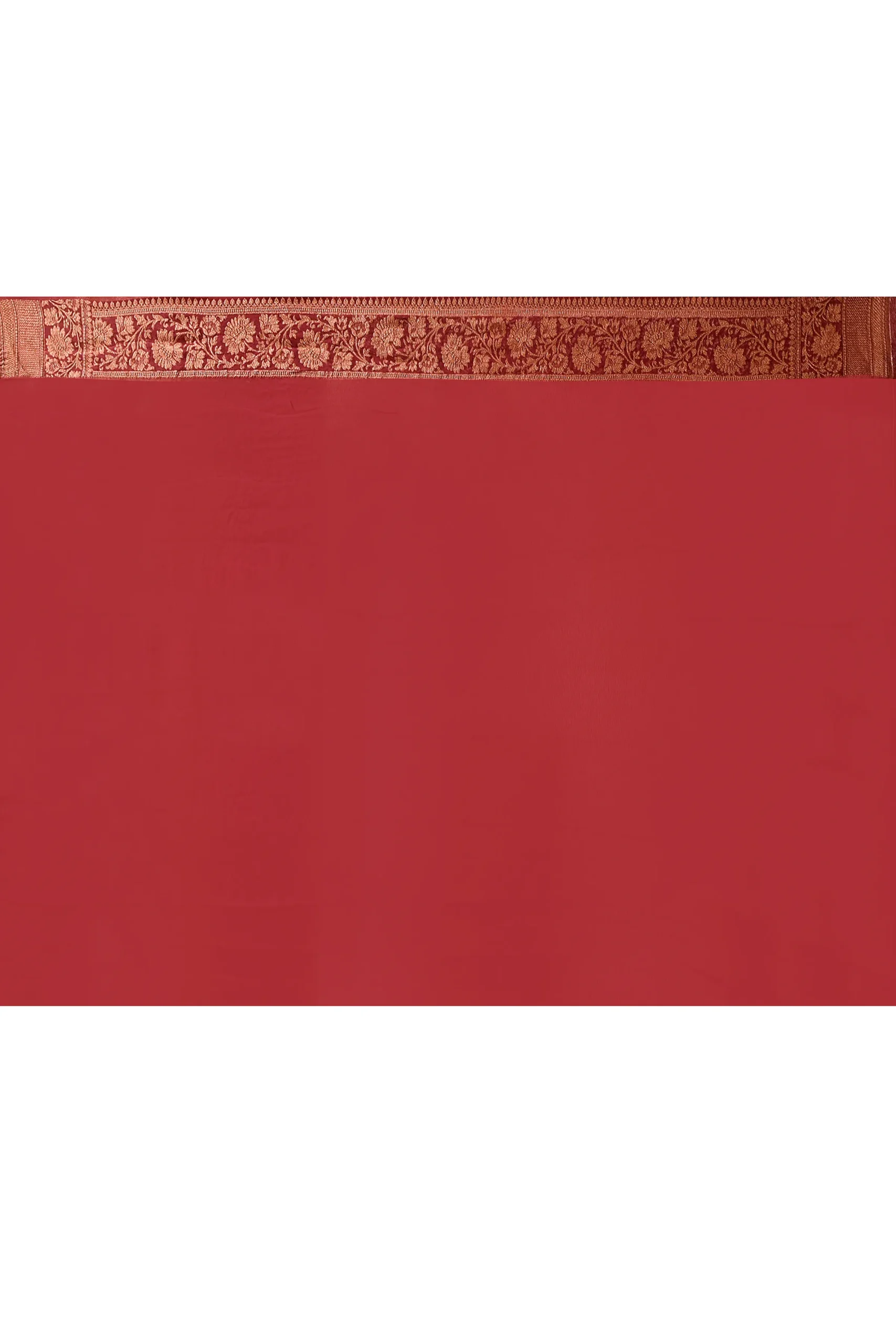 Crimson Red Banarasi Silk Saree with Gold Zari Waves