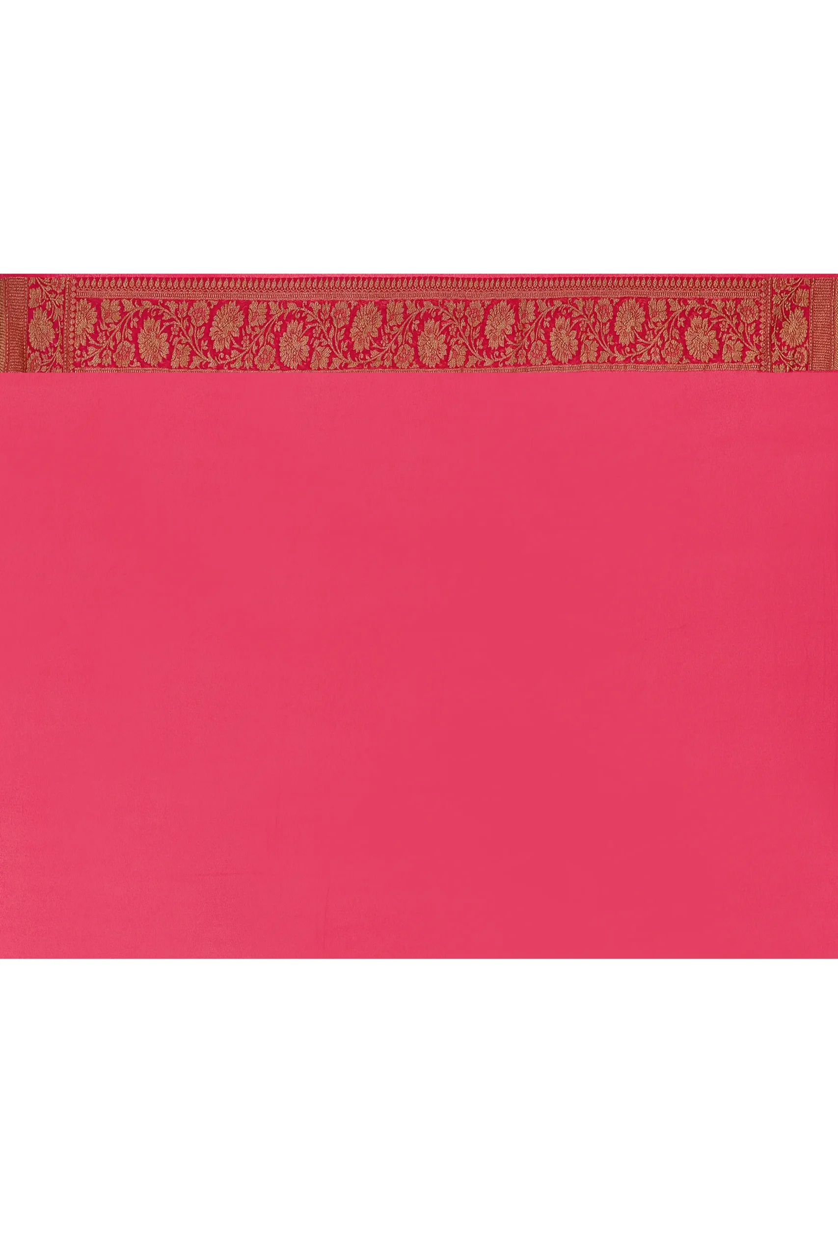 Introducing a deep navy blue pure Banarasi crepe chiffon silk saree, beautifully adorned with delicate gold zari small buti motifs all over. Paired with a striking pink traditional border and pallu enriched with antique gold zari detailing, this elegant drape comes with a matching running blouse piece perfect for refined festive wear.