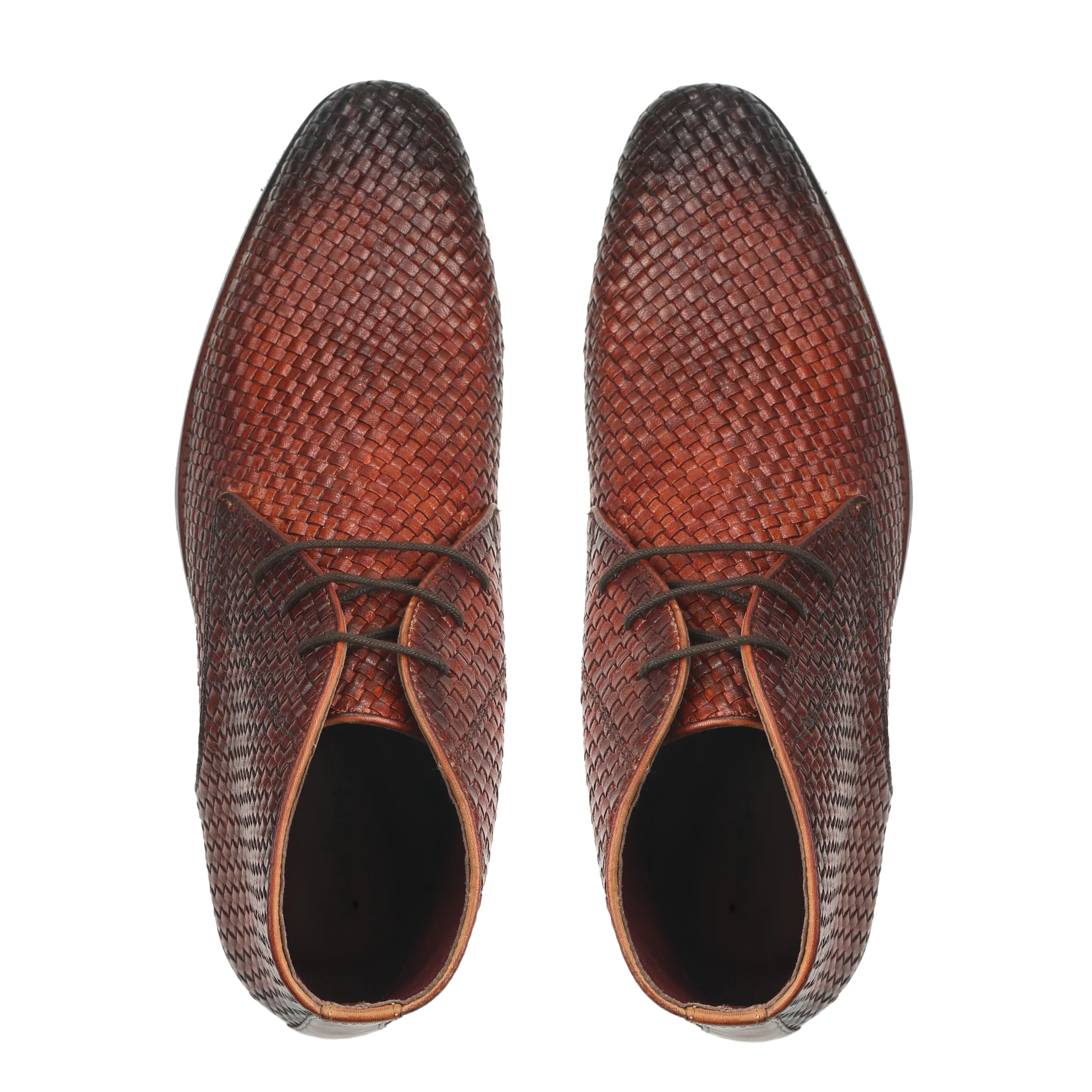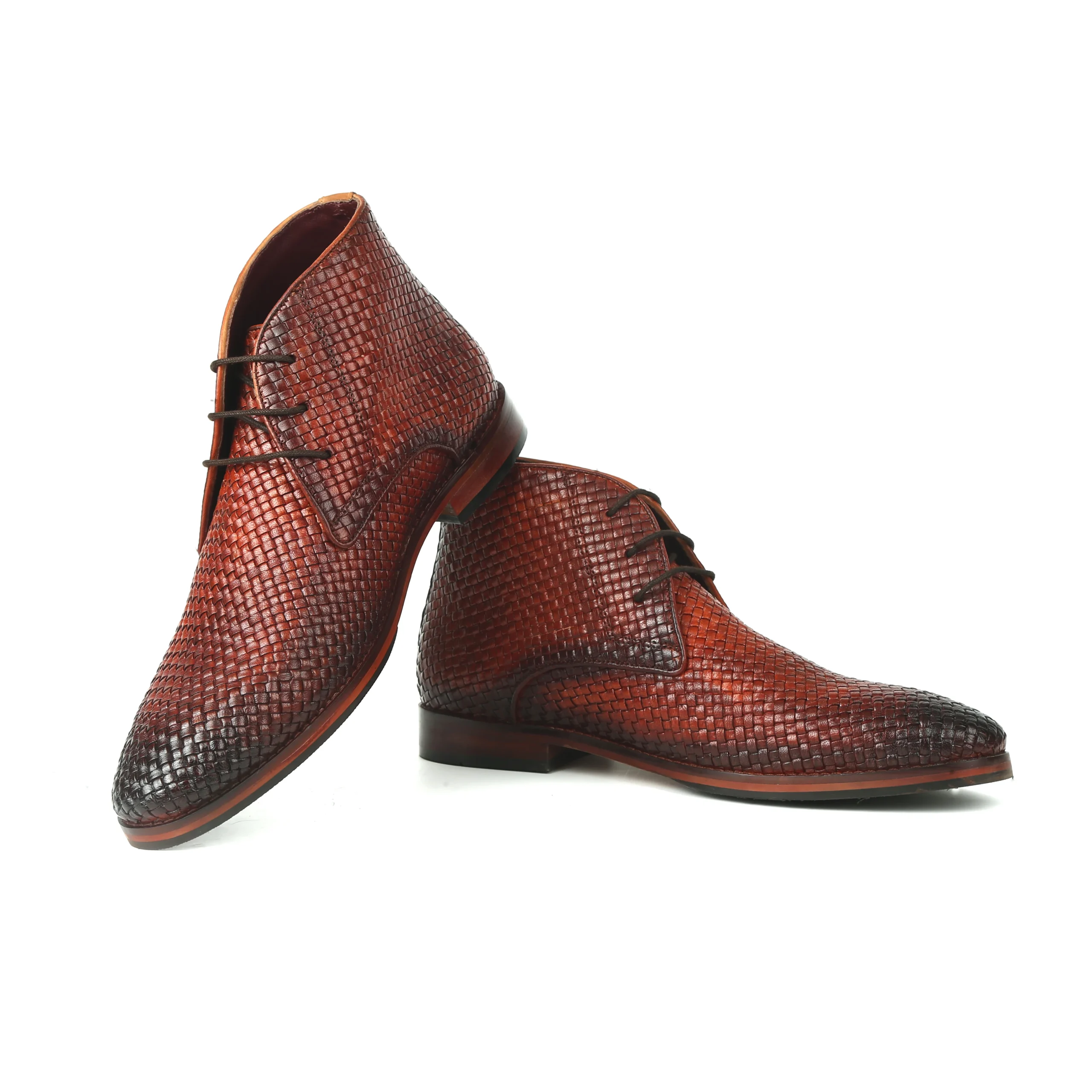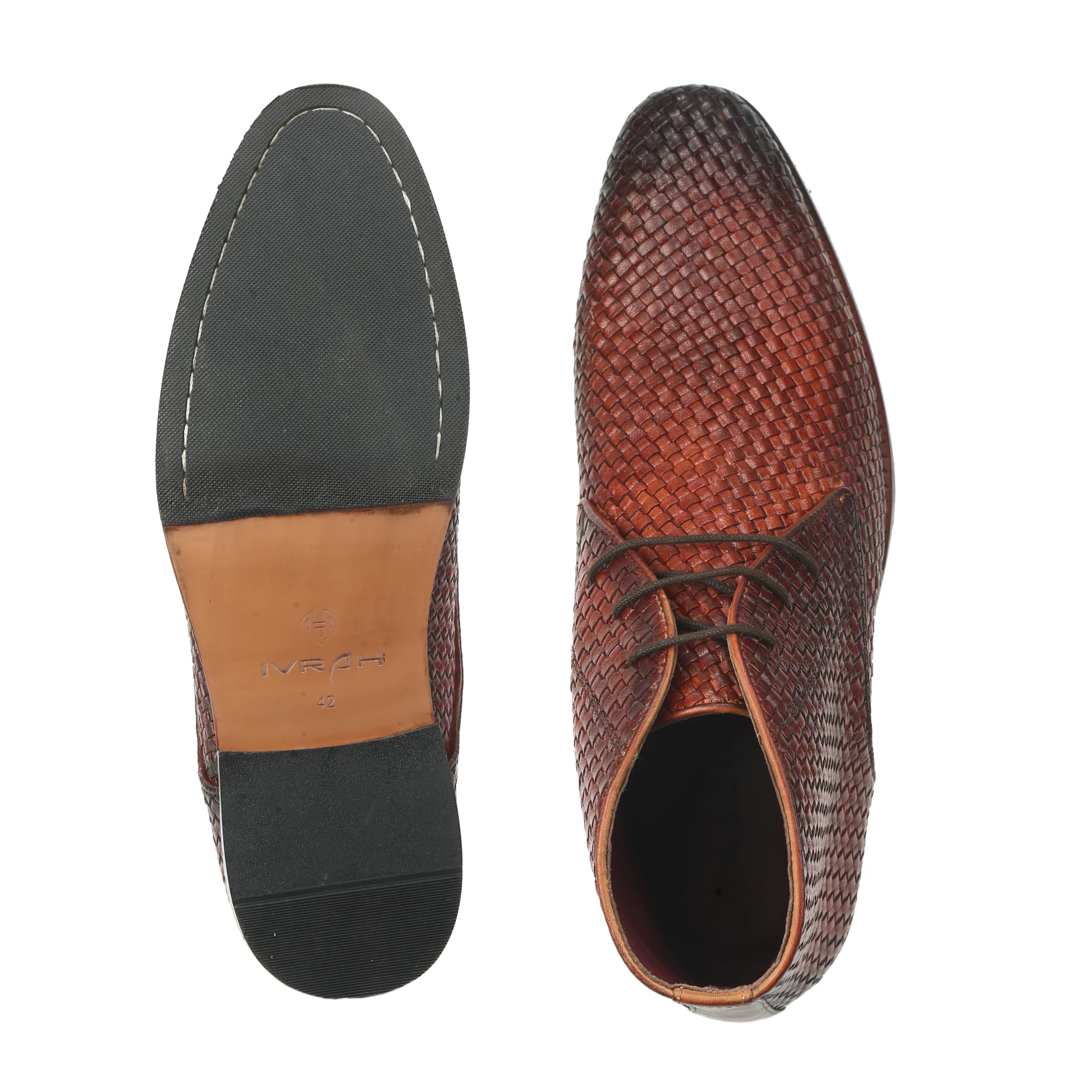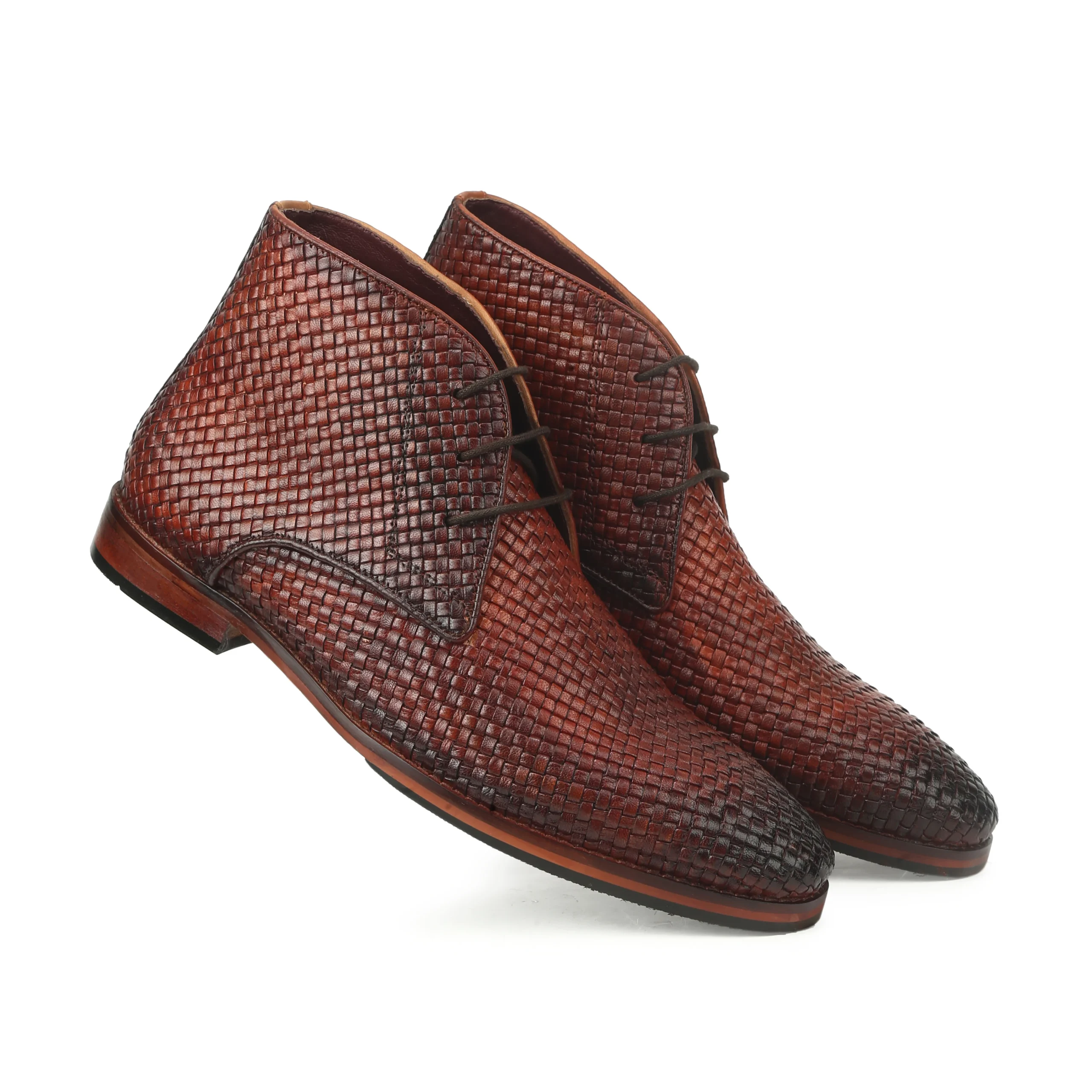 The Dune Cognac Mesh Chukka Boots bring together modern craftsmanship and distinctive style for the contemporary gentleman. Crafted from premium genuine leather with an elegant woven mesh texture, these boots feature a rich hand-painted cognac finish that enhances their unique character. The classic chukka boot silhouette paired with lace-up styling provides both sophistication and versatility. Designed for comfort and durability, the anti-skid sole ensures reliable grip and stability, making the Dune boots an excellent choice for both formal occasions and stylish everyday wear.