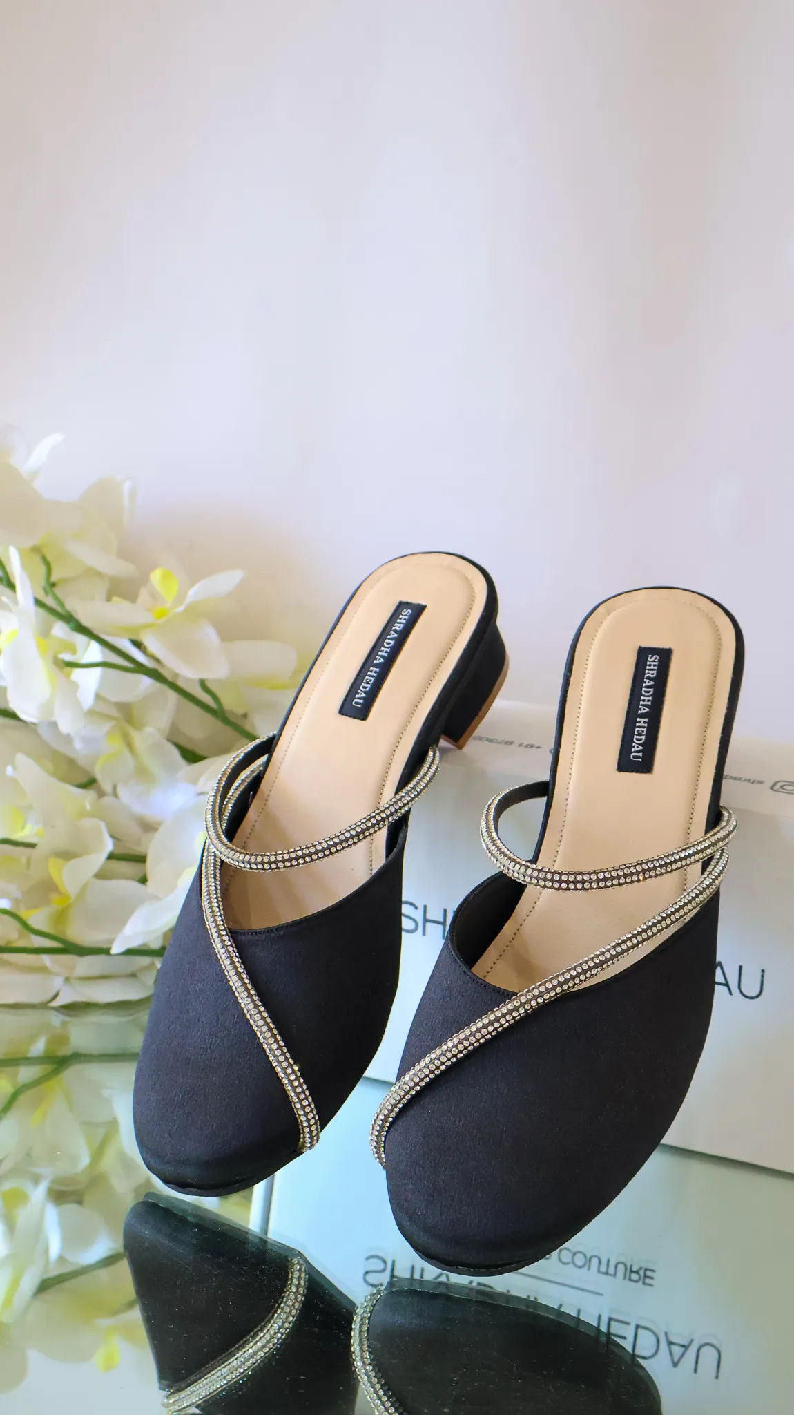 Ellen Black Satin Embellished Closed Heels for Party & Evening Glamour