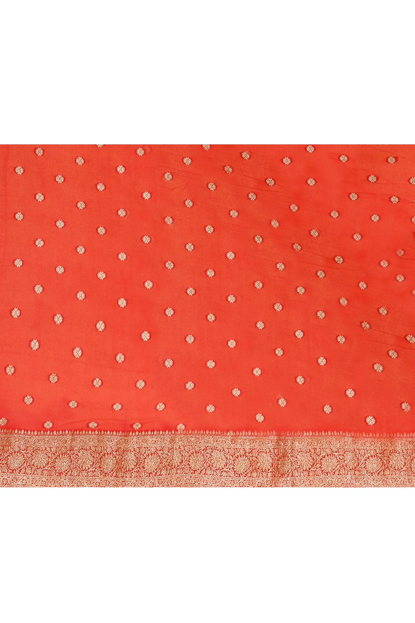 Coral Orange Pure Katan Silk Banarasi Saree with Woven Motifs from Golden Muslin By Naaritva Banaras