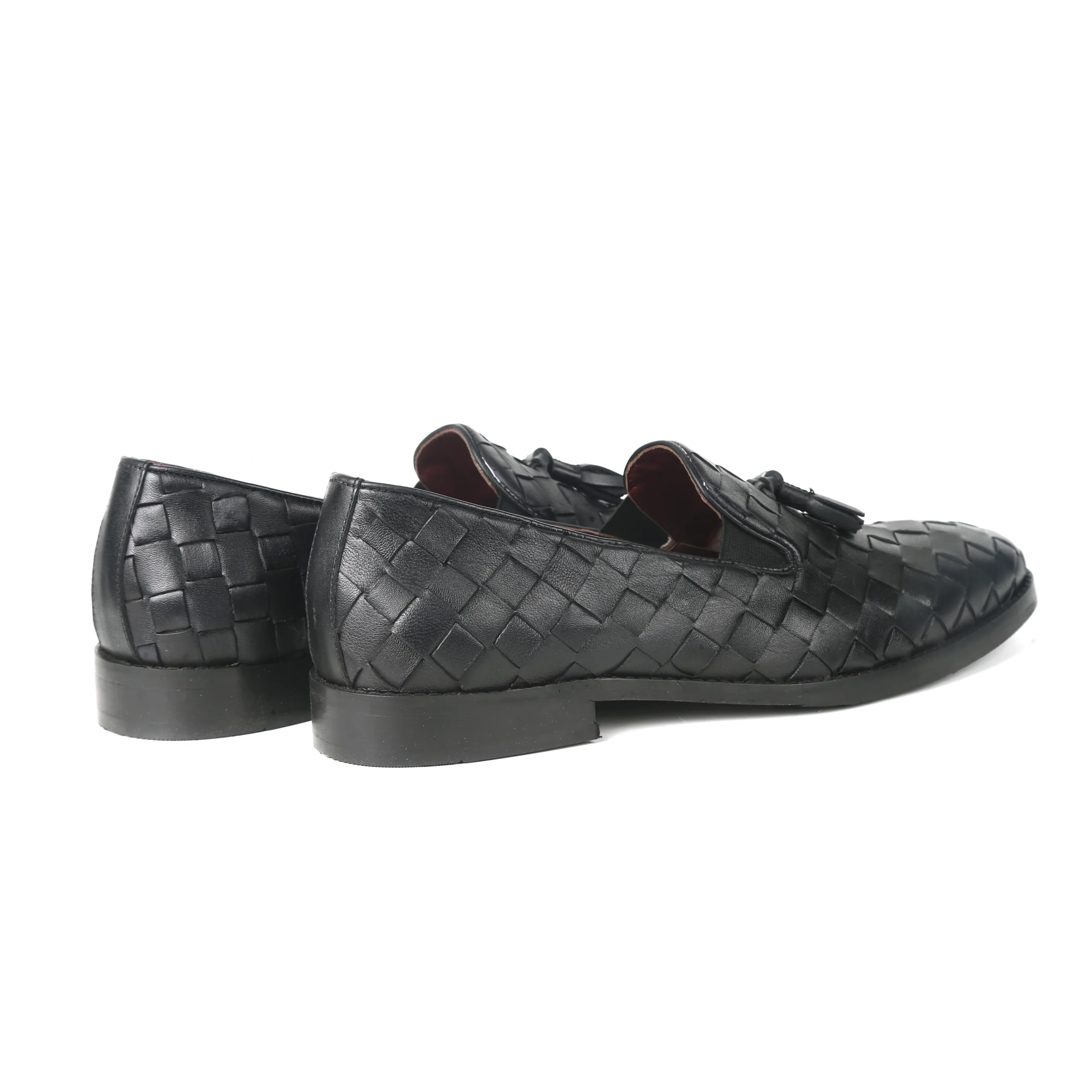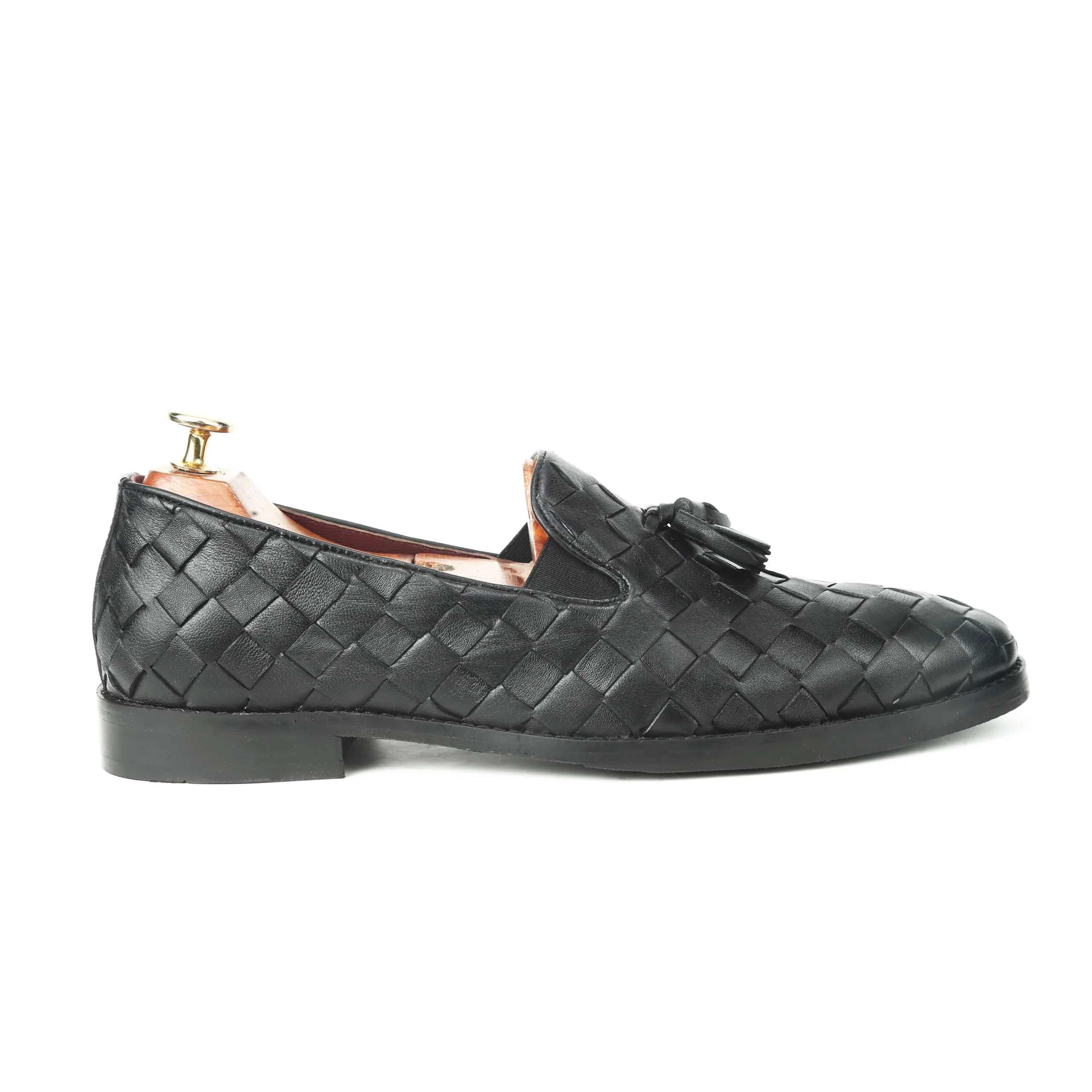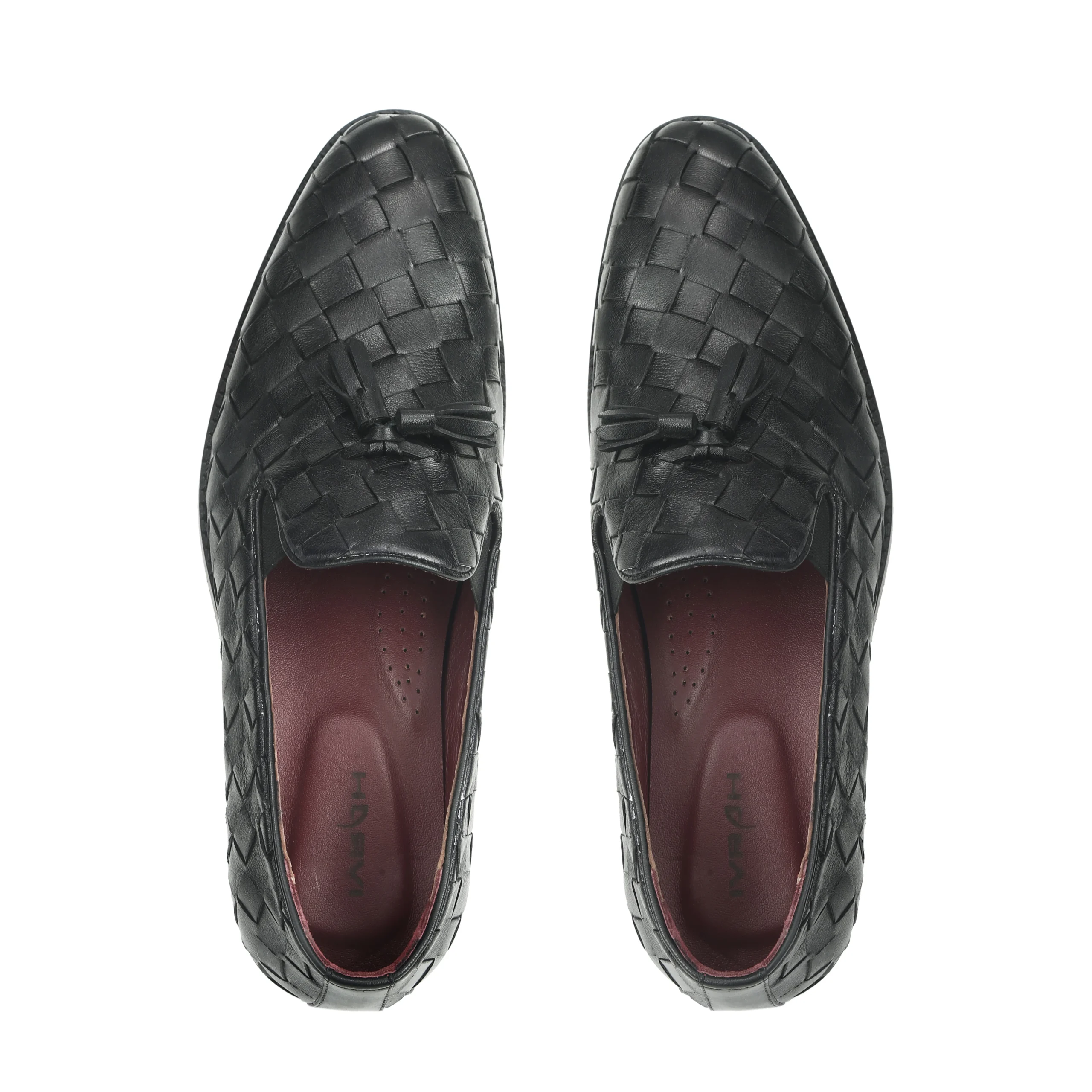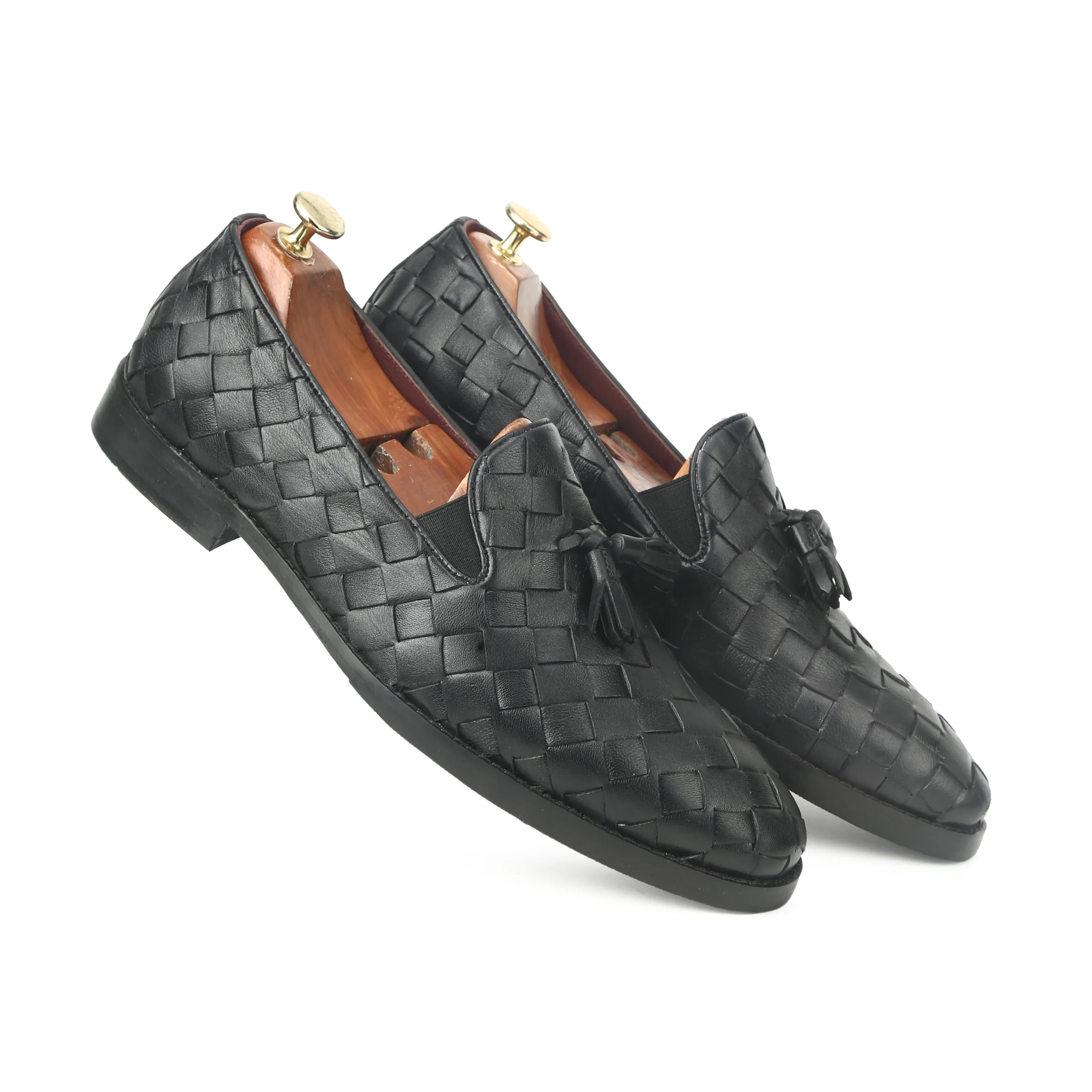 Falcon Black Woven Leather Slip-On Shoes – Men’s Wear