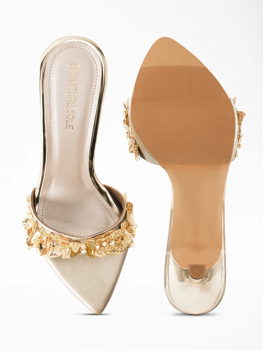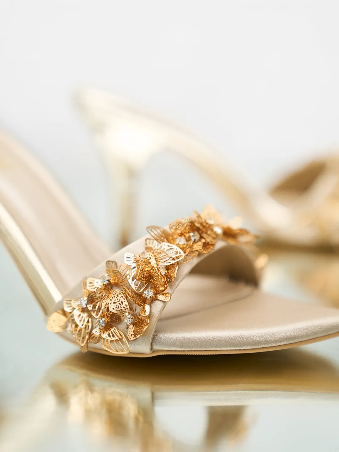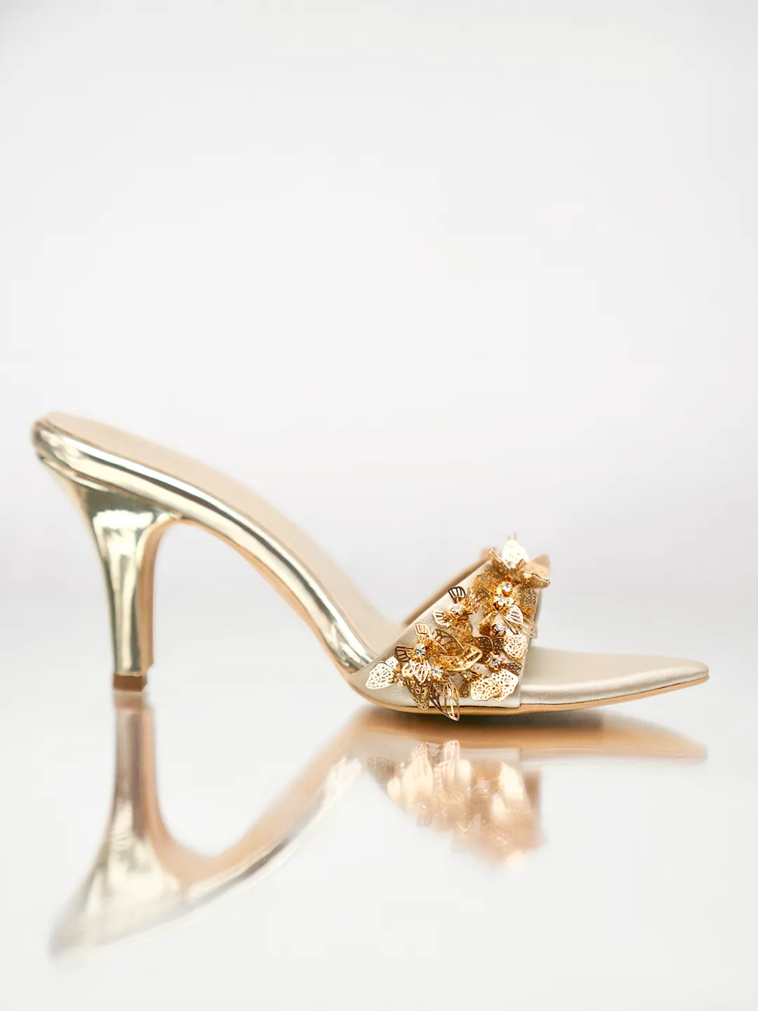 Gold Butterfly Heel Mule – Bridal Heels & Embellished Heels for Women
