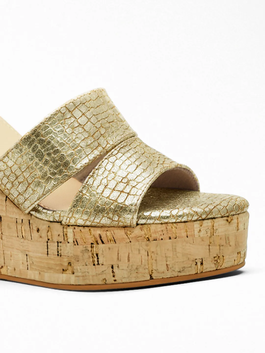Gold Croc Cork Wedge Wedge – Wedge Heels Women & Mules for Women