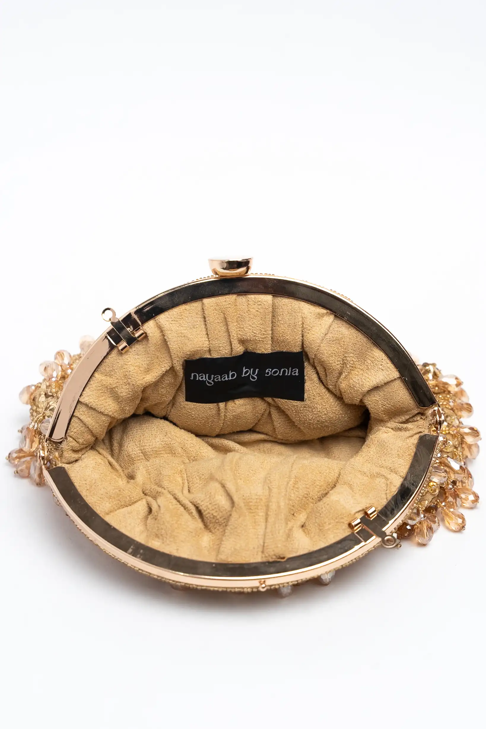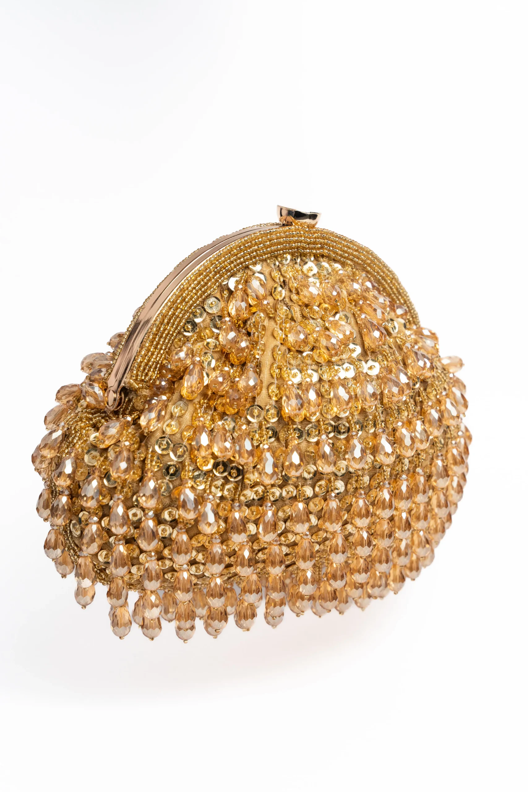 Gold Jewel Embellished Clutch with Subtle Sequinned Frame Finish