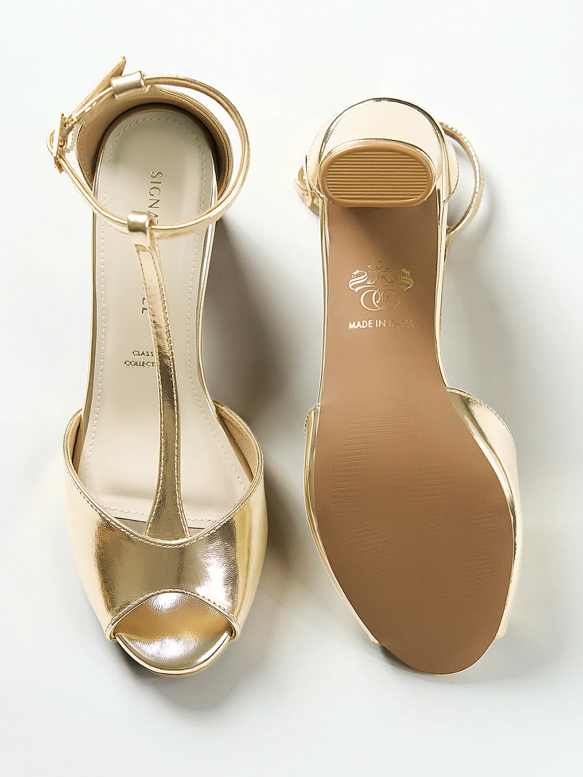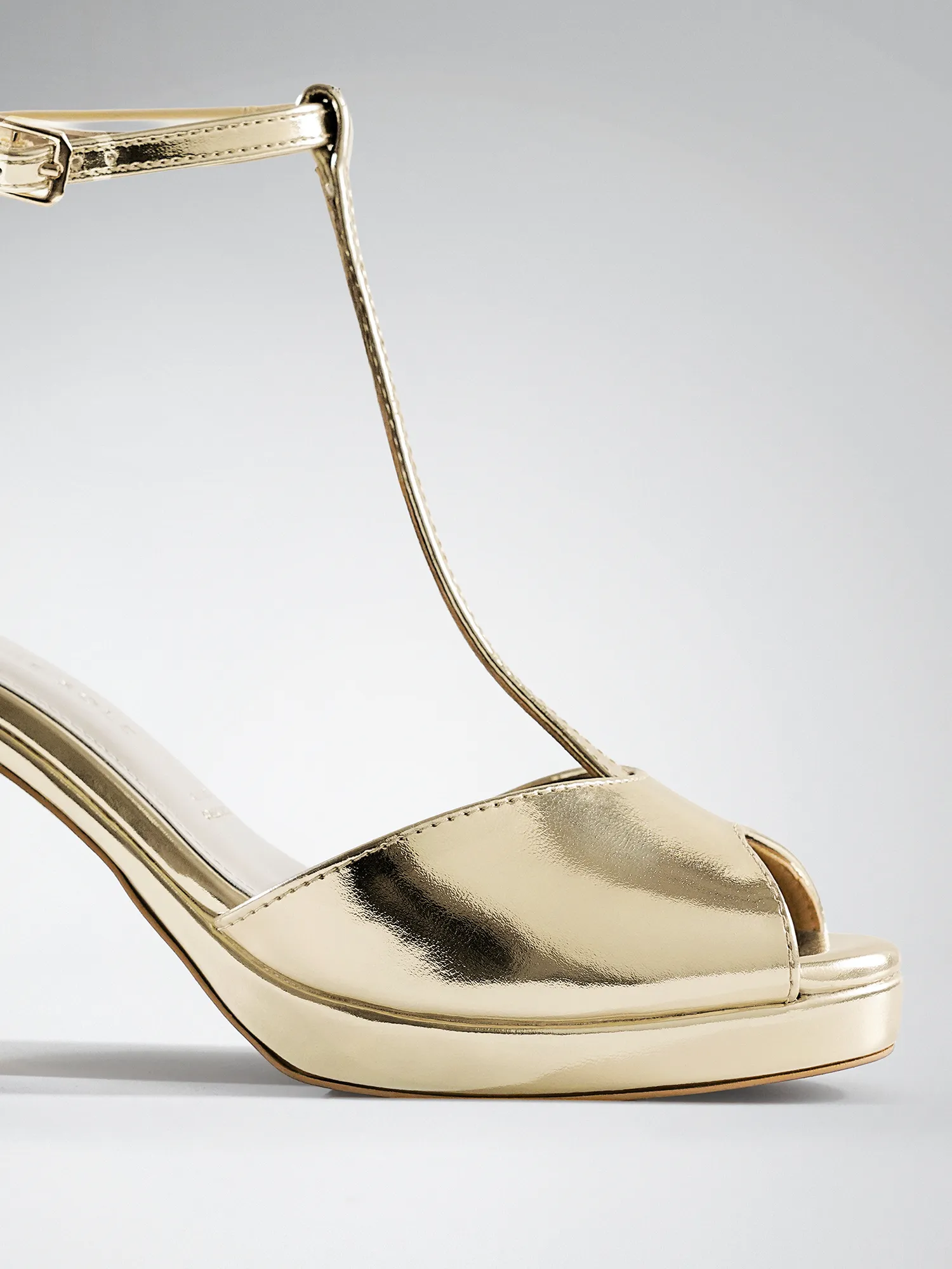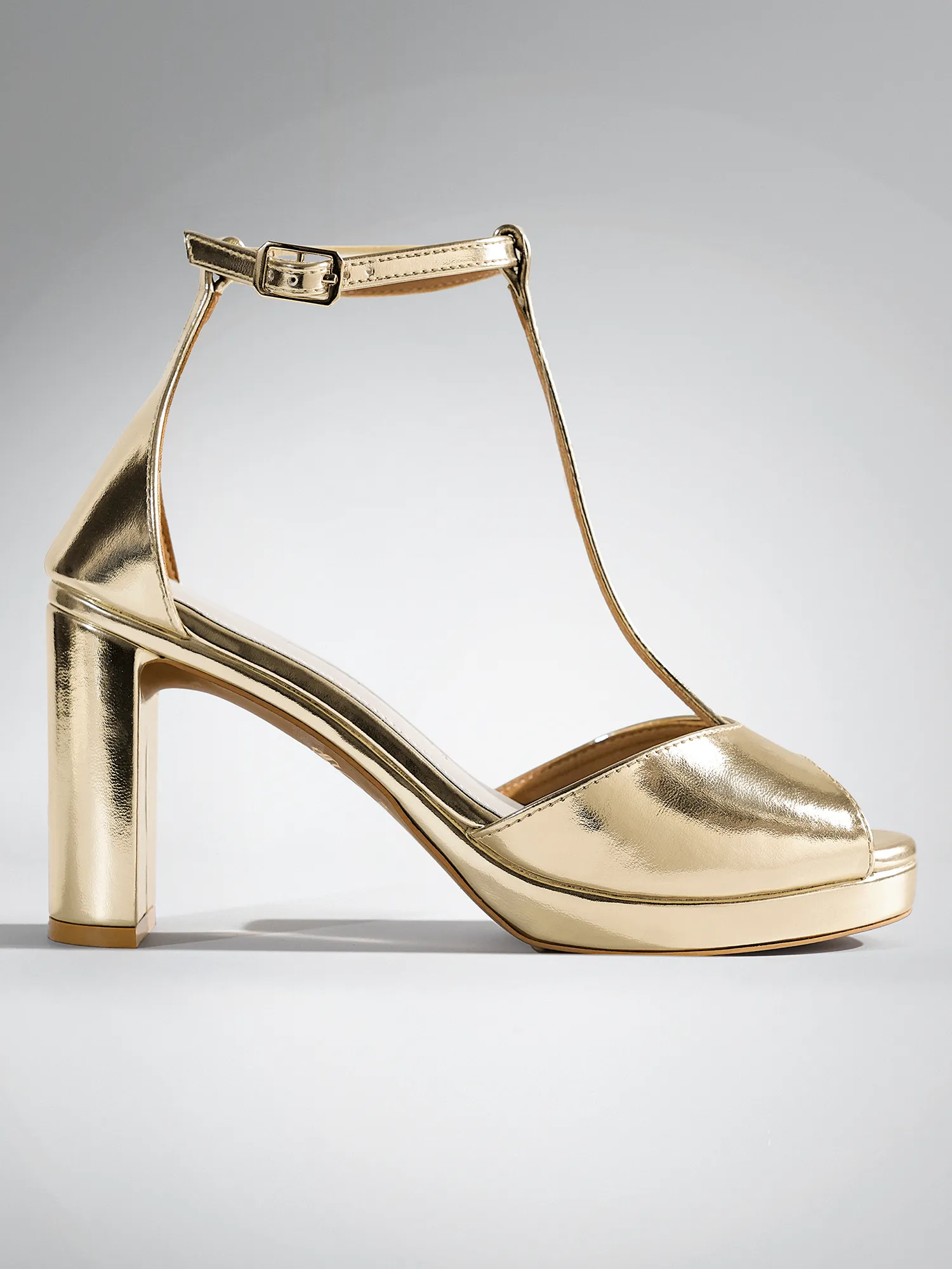 Gold Wedge T-Strap Block Heel – Block Heels Women & Ankle Strap Heels for Women
