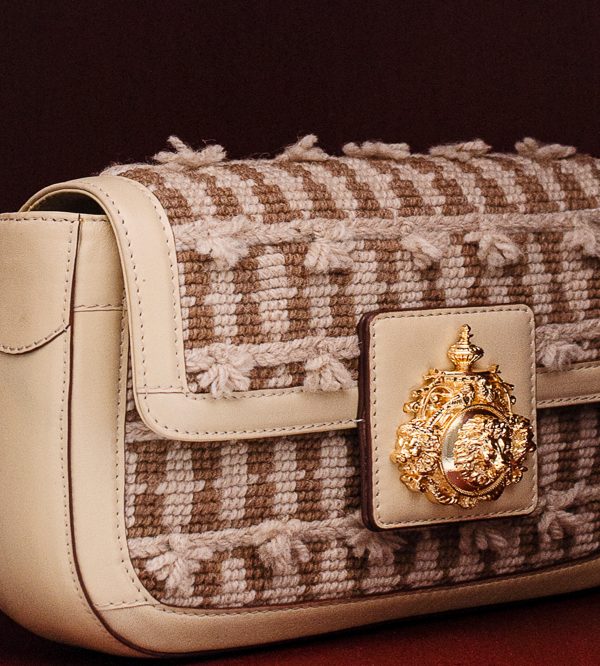 This elegant bag redefines style. Perfect for spontaneous getaways, this bag captures the essence of adventure and elegance. Experience captivating elegance with this Beige rectangle shaped shoulder bag with thread tassel embroidered motifs & gold plated animal, floral carved brooch in centre. Comes with detachable small sling. Designed for bold personalities, it exudes charm and sophistication. It features thread, complemented by standard fittings. The bag is secured with a magnet button.