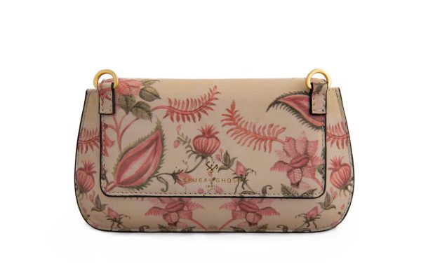 Experience vibrant design with this bag. A blend of superior materials and cutting-edge design, this is more than just an accessory. Experience striking elegance with this Beige rectangle-shaped clutch with stitch line embroidered border, vintage chintz hand-painted print & matte gold plated animal carved brooch in the center. Comes with a detachable small sling. It features print, complemented by standard fittings. The bag is secured with a magnet button. Perfect for those who dare to be different, this piece shines with creativity.