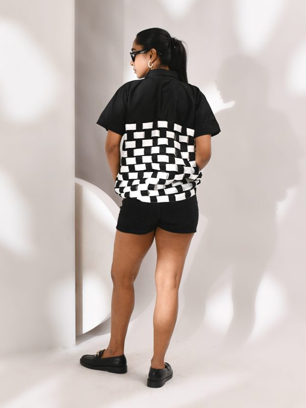 Introducing our black-and-white cotton jacket. The jacket comes with an inner layer and features an interlacement of black and white panels that move like code across the body, creating a silhouette that is structured yet fluid, modern yet restrained. Every contrast is intentional, making a subtle yet striking statement.