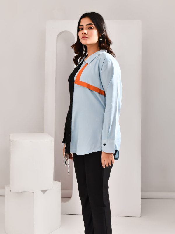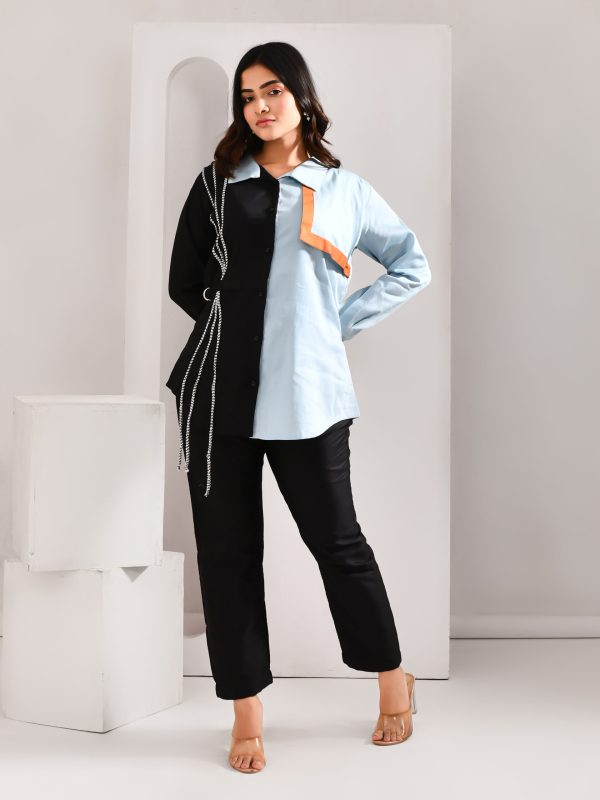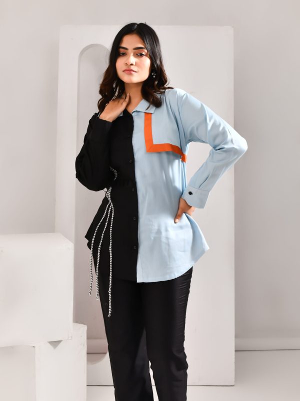Introducing our black and sky-blue blended cotton shirt, crafted in soft and breathable fabric that ensures all-day comfort. Designed to elevate your everyday mood, this contemporary piece features contrasting thread surface detailing that adds depth and dimension to the look. Perfectly balancing casual charm with modern style, this shirt is a versatile pick for days when you need an instant style and confidence boost.