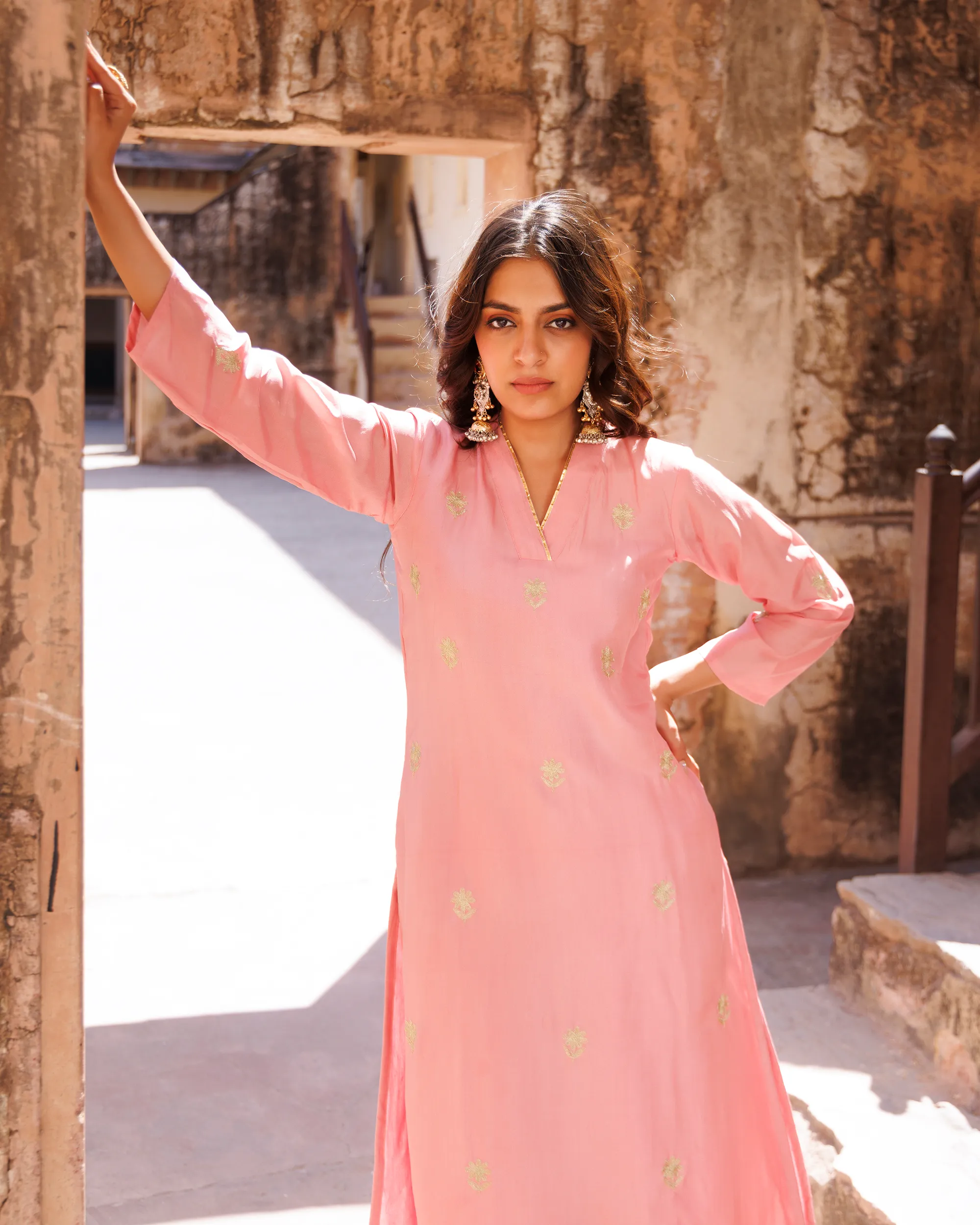 Style with pearl or gold-toned jhumkas to complement the delicate embroidery. Pair with classic juttis or embroidered flats for a graceful finish.