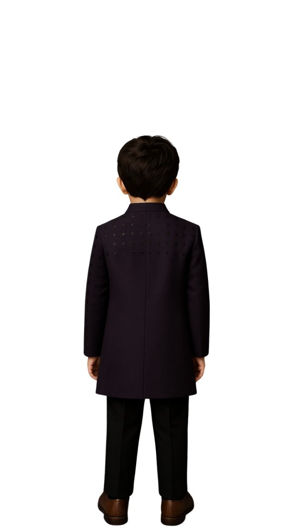 This dark maroon jacket set, with its detailed craftsmanship, is perfect for weddings, festive gatherings, and special family moments. Pair it with traditional mojaris or smart formal shoes to complete the look with refined elegance.