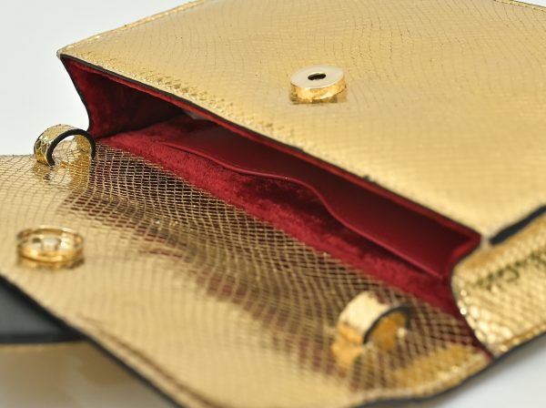 Experience refined design with this bag. Every detail is a masterpiece, offering both luxury and practicality. Experience bold elegance with this Gold genuine leather handbag with a rectangle structured shape, envelope flap, mammoth cut work motif & textured pattern. Comes with a detachable leather strap. Unleash your confident style with this statement-making piece. It features textured, complemented by 24k gold plated fittings. The bag is secured with a magnet button. making it both glamorous and practical.