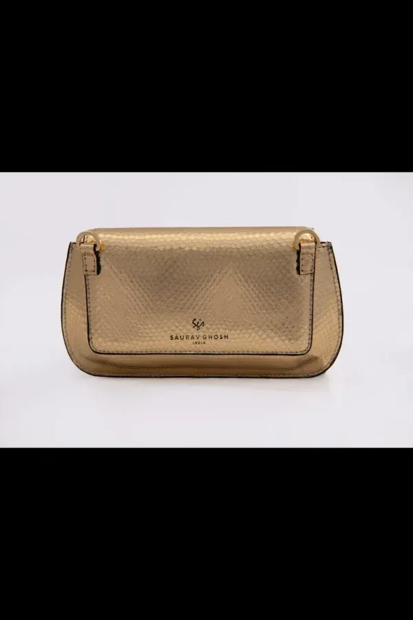 Gold Embroidery Details Metal EmbellishedClosure Magnet ButtonDelivery 21 DaysAge Group AdultsOccasion Party, Festive, Wedding, Formal Event, Wedding, Birthday, Anniversary, Roka, Sangeet, Mehendi, Diwali, Cocktail Party, EveningWash Care Avoid contact from water, perfume, cosmetics, oil & grease & filing items, keep always stuffed with tissue papers to retain their original shape. Use non-abrasive cloth for metal hardware cleaning. Always store in the dust bag for longer product life.Product Dimension Dimension L x W x H (in cms): 22 x 13 x 3Country Of Origin INDIAComposition Genuine Leather