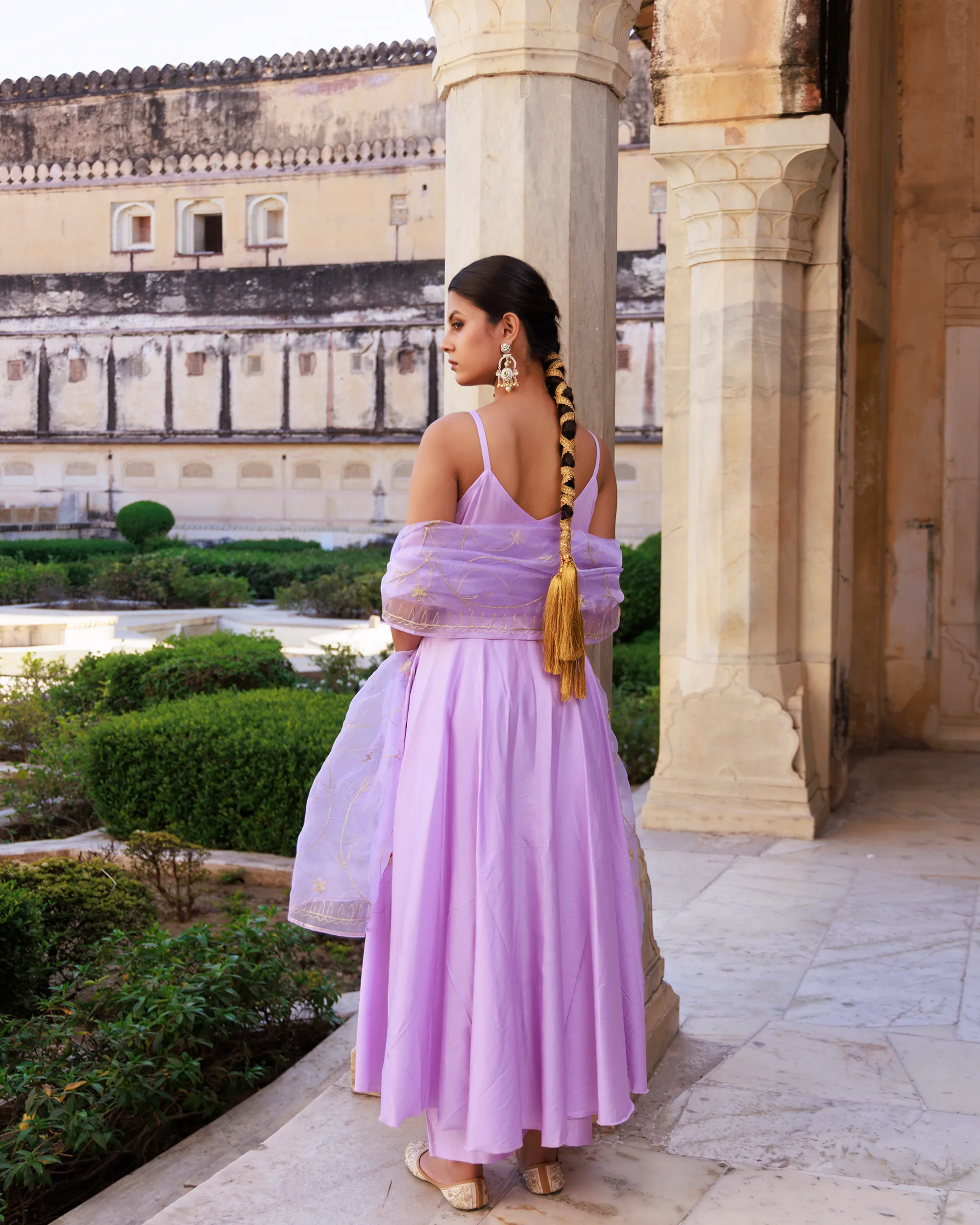 Lavender Cotton Silk Strappy Anarkali Set with Gota Patti & Aari Dupatta