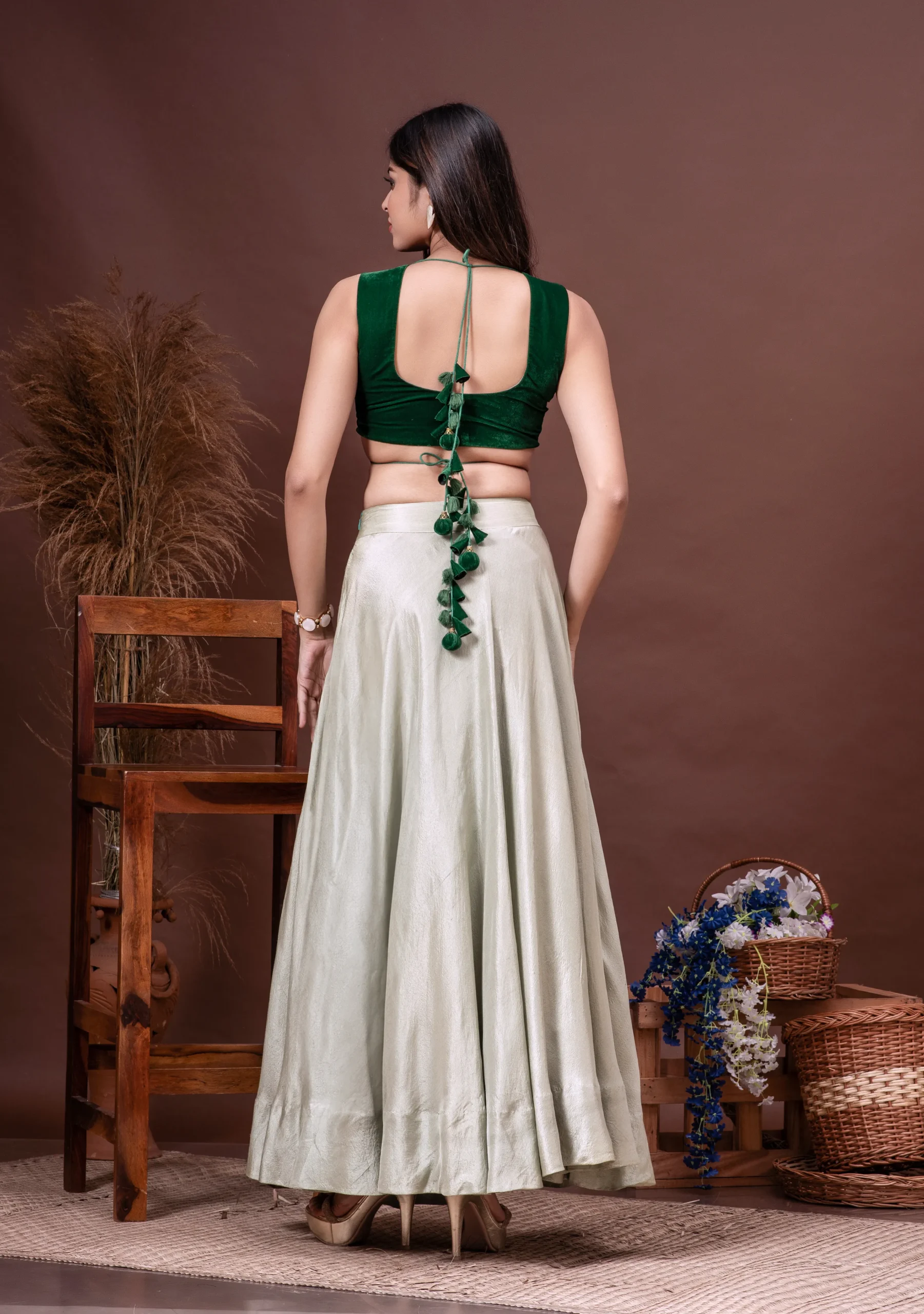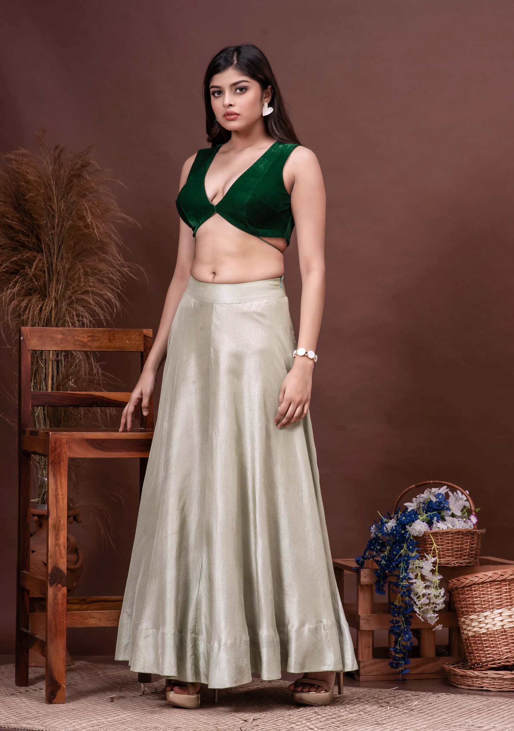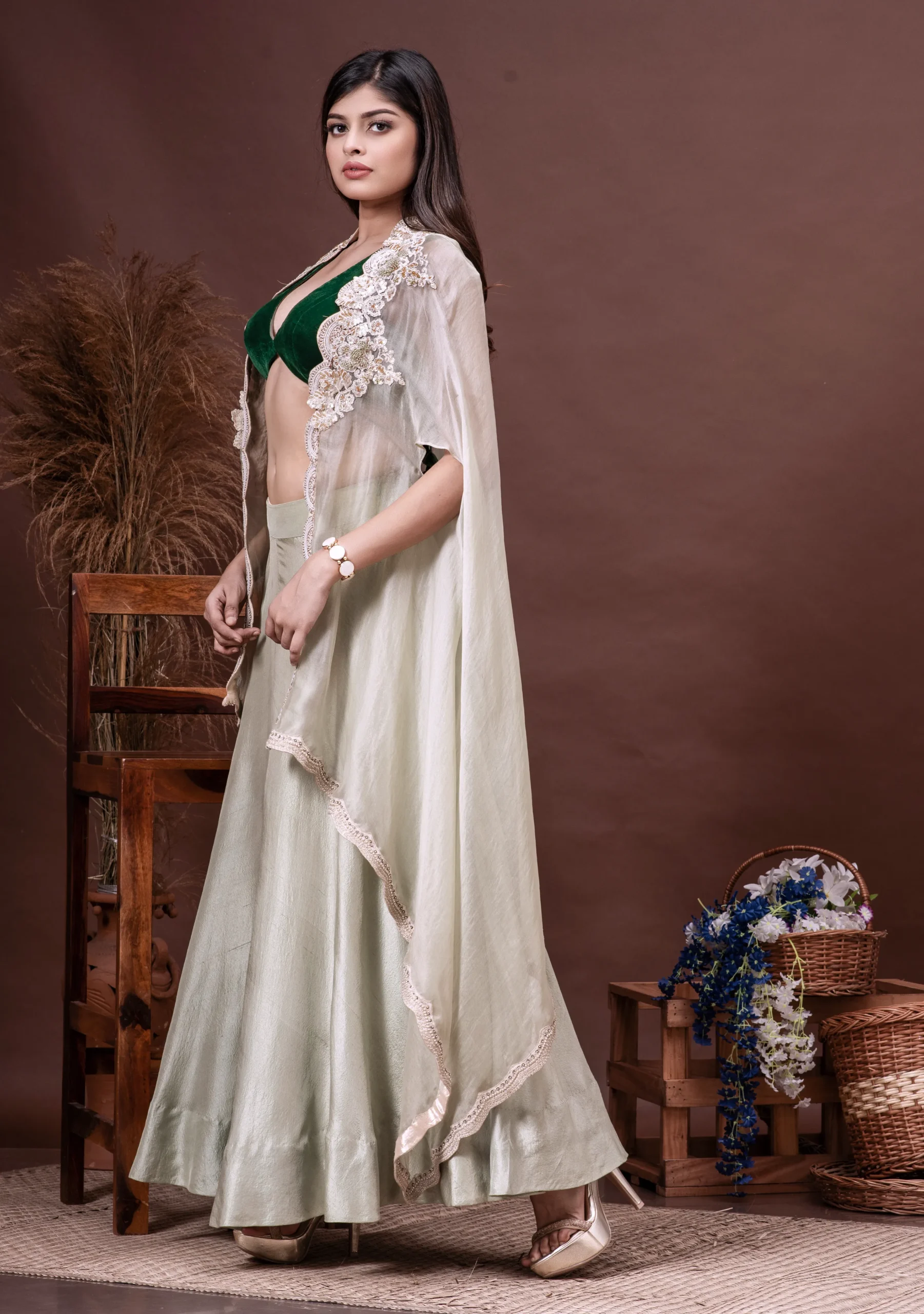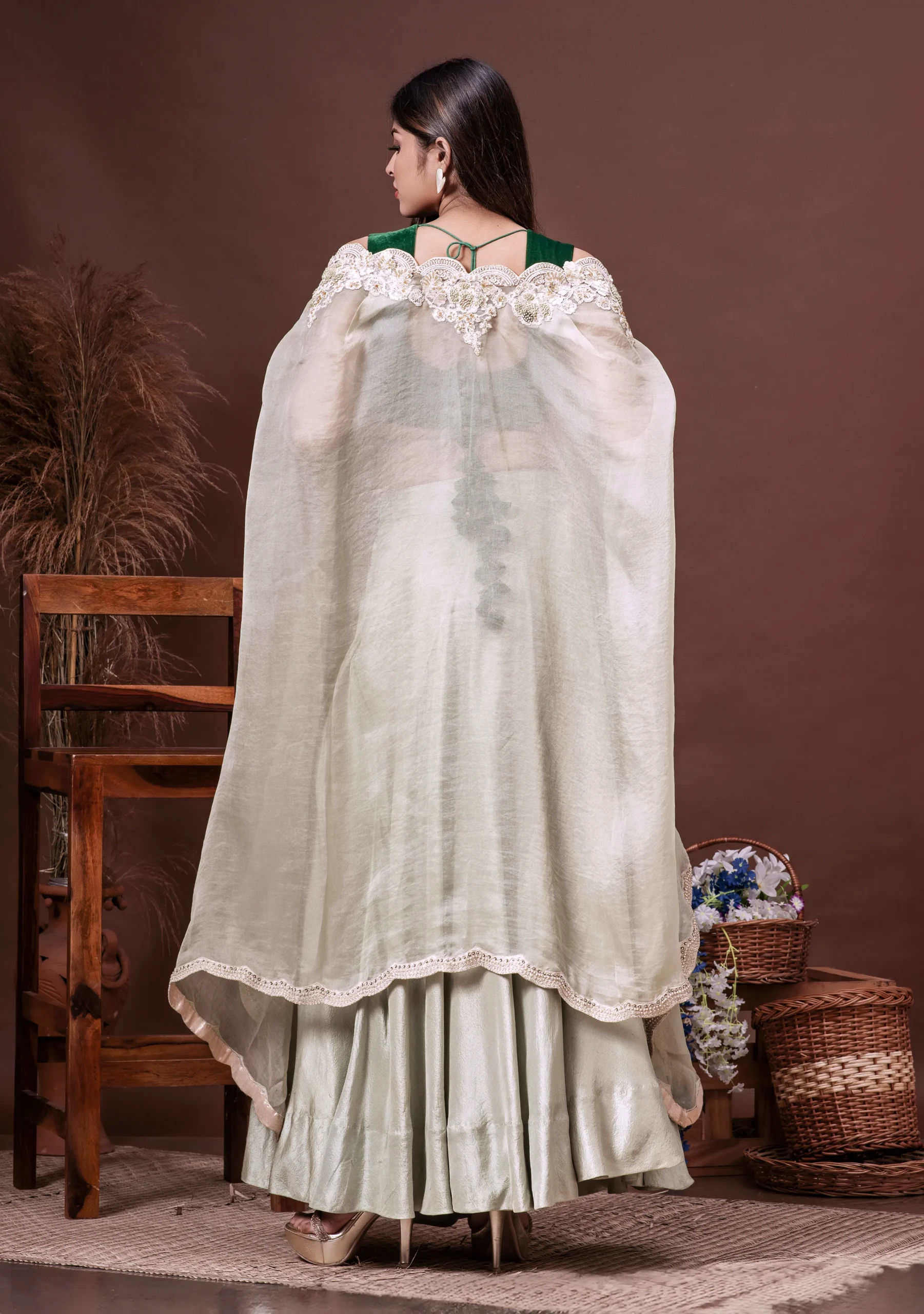 Mint Green & Bottle Green Silk Organza Cape Skirt Set