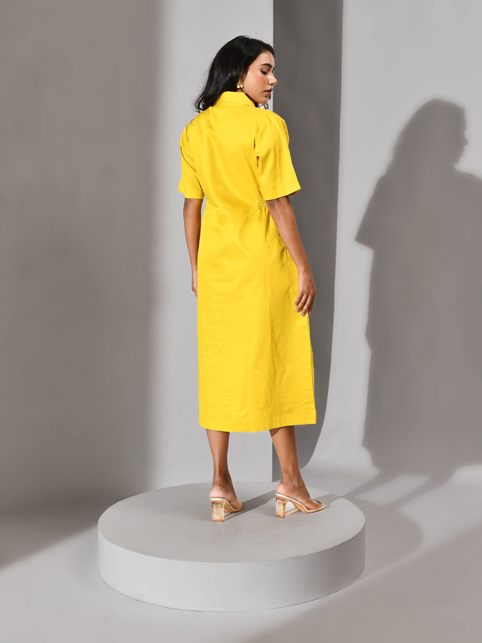 Highlight the freshness of this lime dress with delicate gold or pearl jewelry for a subtle glow. Pair it with strappy sandals or nude flats for daytime ease, and add a woven bag to complete your resort-ready look.