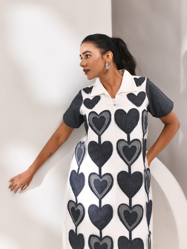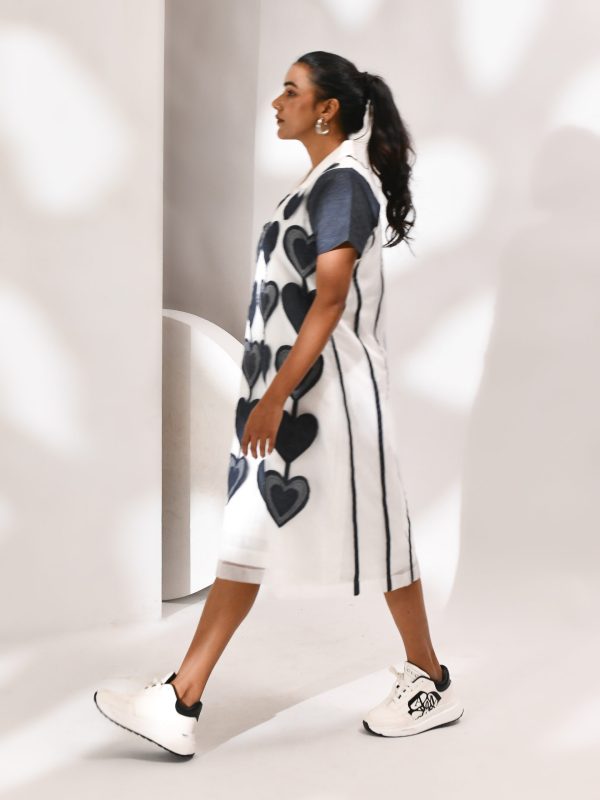 White Organza Dress With Heart Patch Detailing