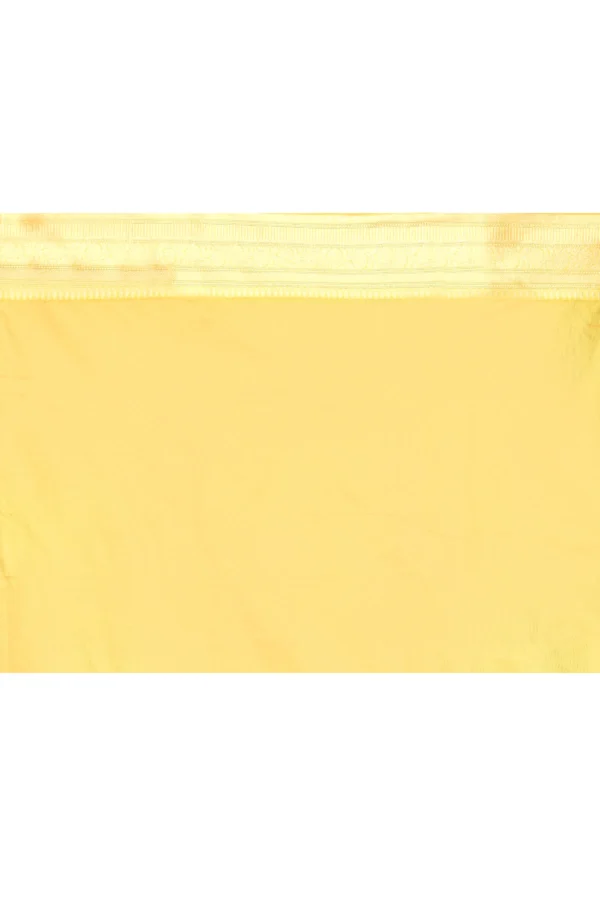 Introducing a radiant golden-yellow pure Katan silk saree, adorned with subtle finely woven motifs that enhance its graceful simplicity. Accented by a refined zari border and a fluid, elegant palla, it offers a gentle lustrous sheen and balanced drape. Ideal for weddings and festive daytime occasions, it comes with one perfectly matched running blouse piece.