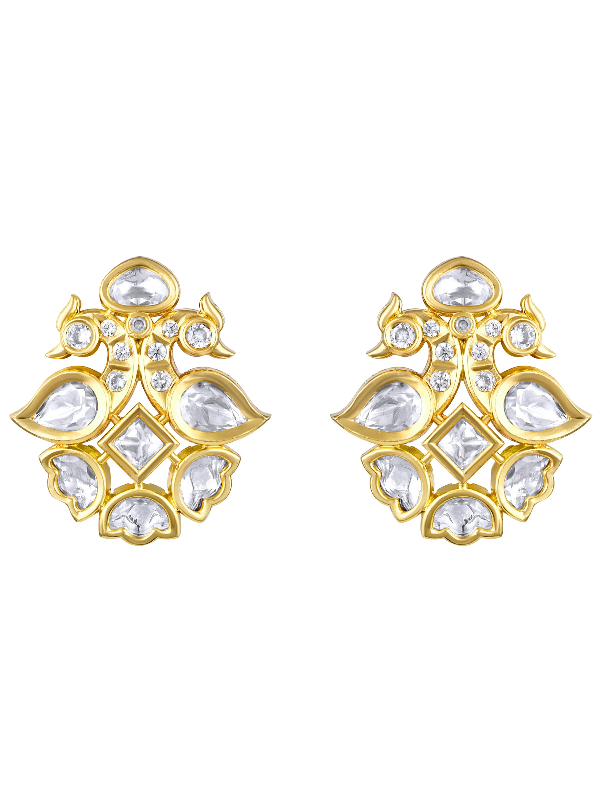 Micron Gold Polished Brass with mosanite kundan polki, Agate, M0ther Of Pearl, zirconia