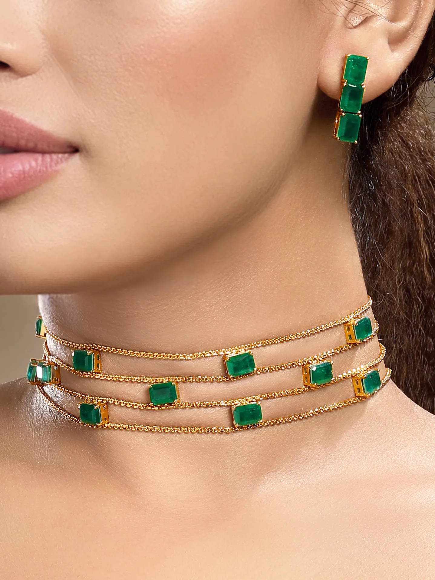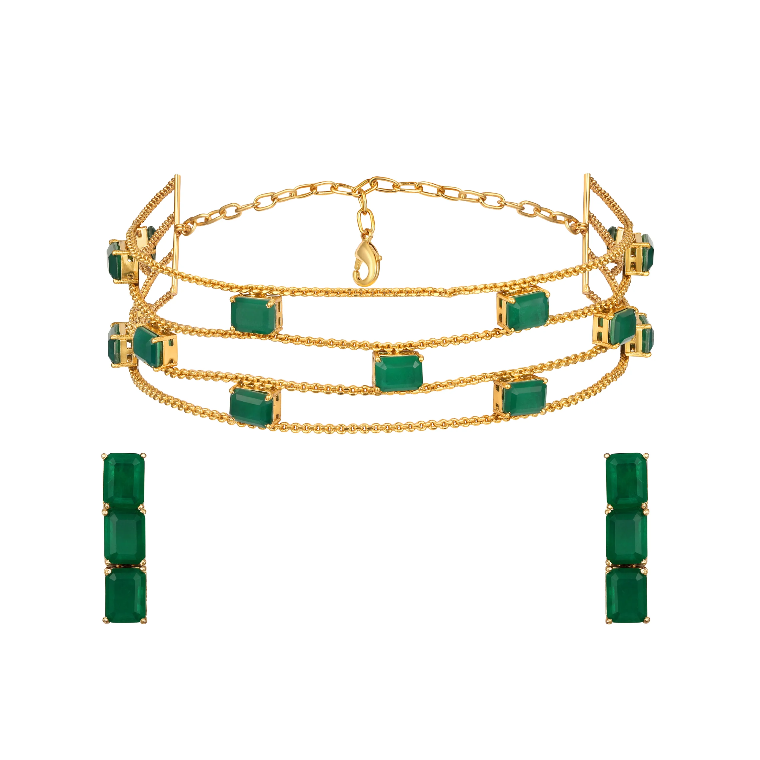 Green & Gold Micron Plated Choker Necklace Set with Emerald Accents