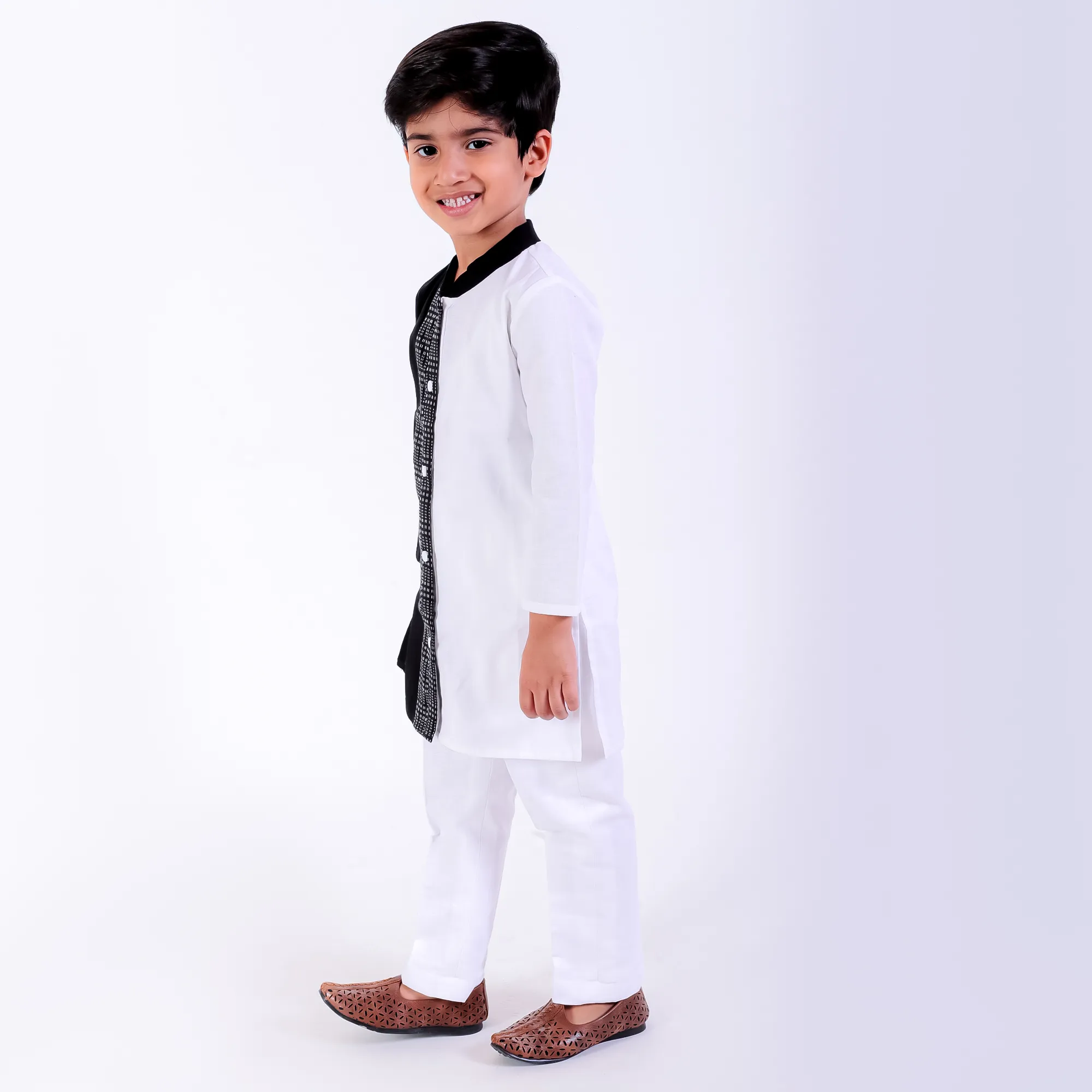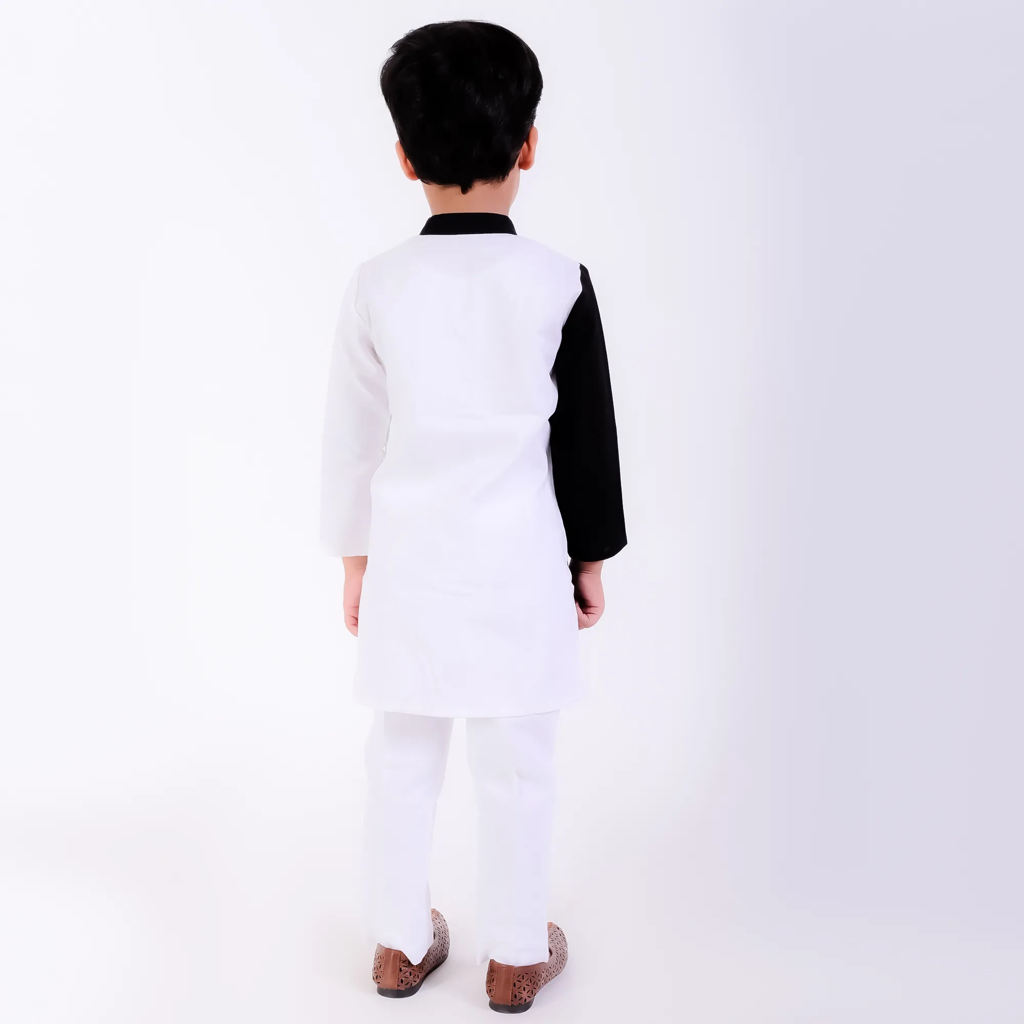 Half Black and Half Ivory Kurta Set with Matching Pants