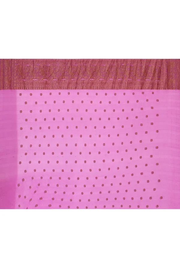 Hot Pink Silk Saree with Antique Gold Zari Jaal and Wine Border