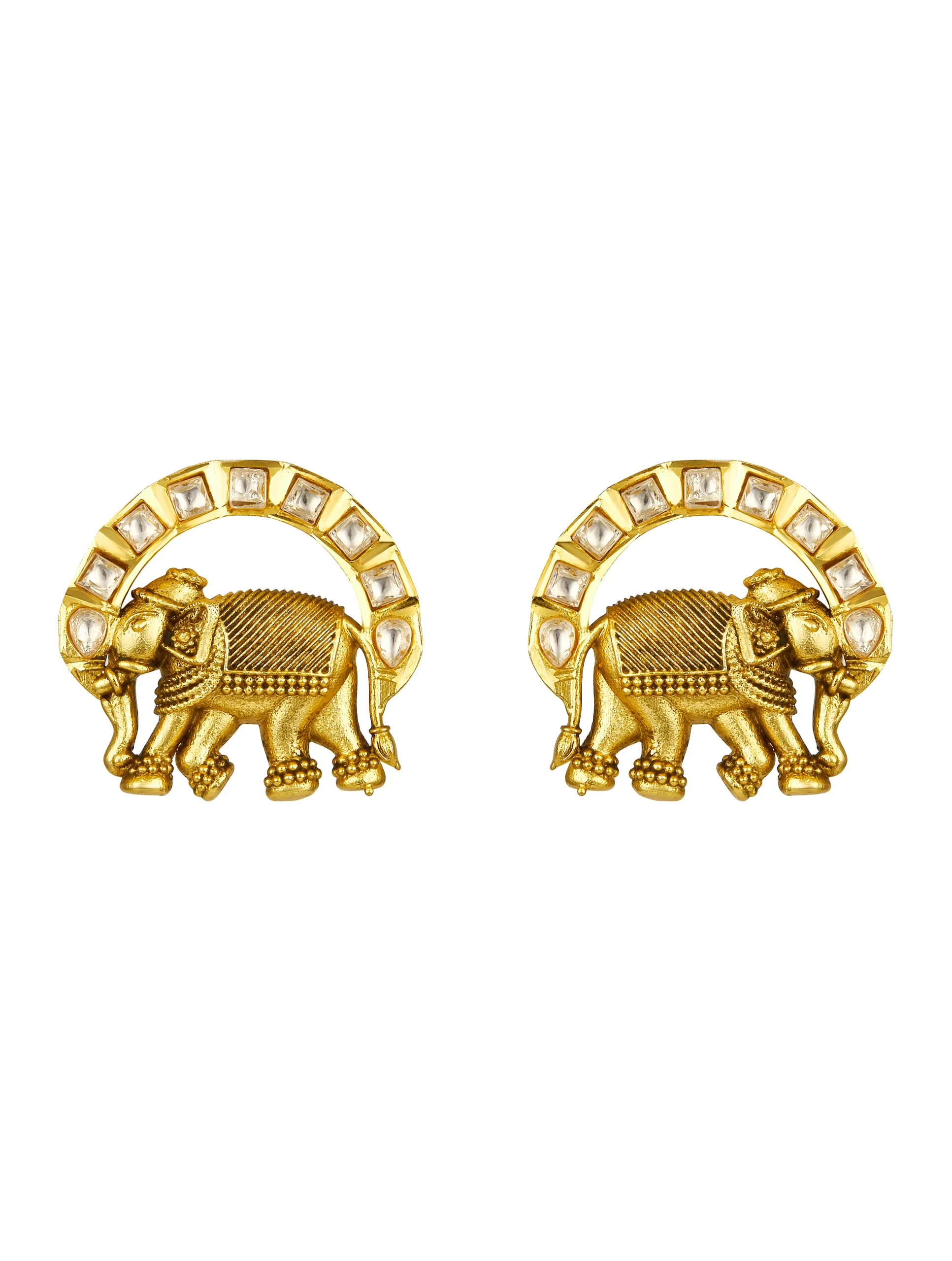 Micron Gold Polished Brass with blemishes of oxidised polish with mosanite kundan polki. Italian Crystals.