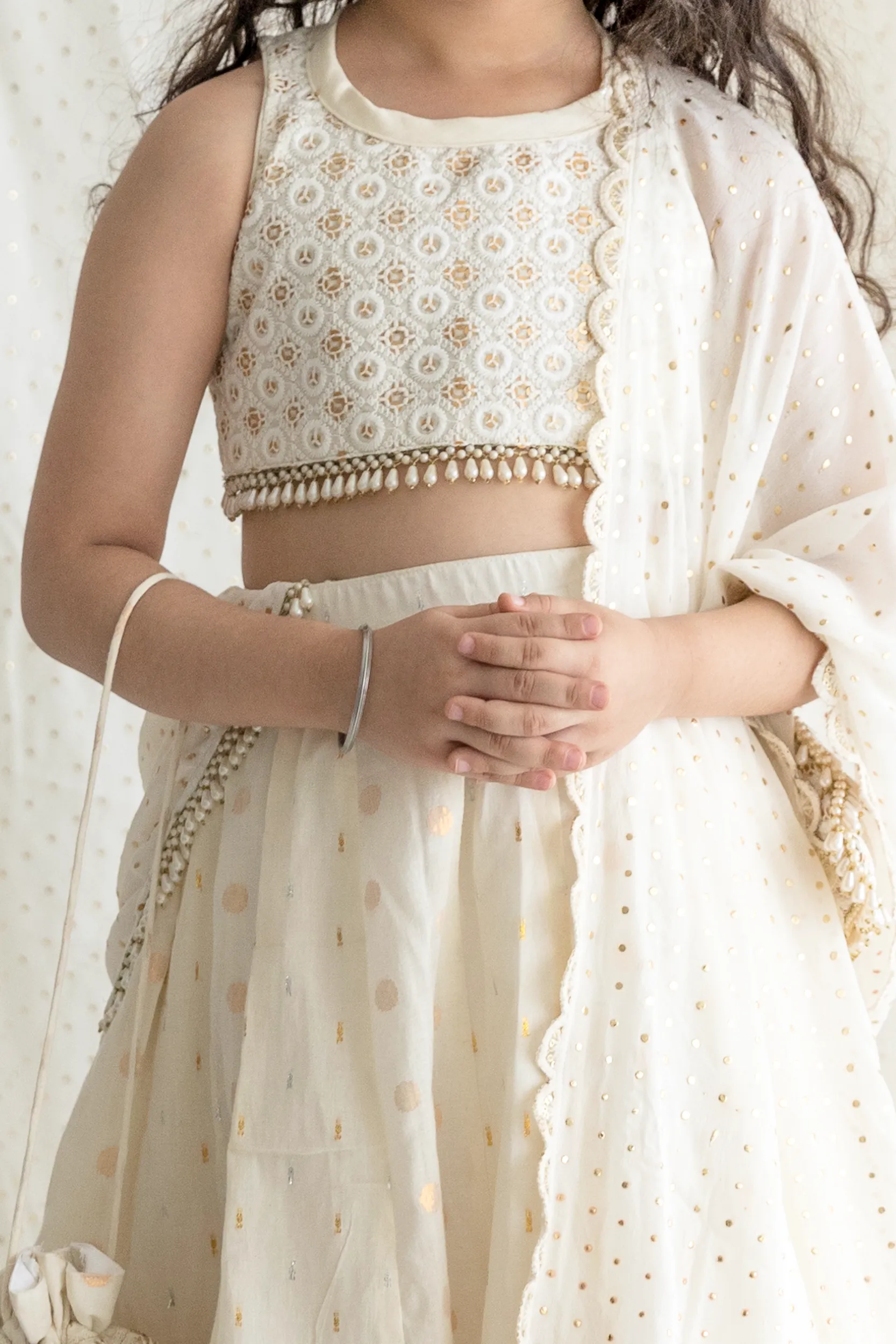 Ivory Cotton Lehenga Set with Pearl Embroidered Crop Top