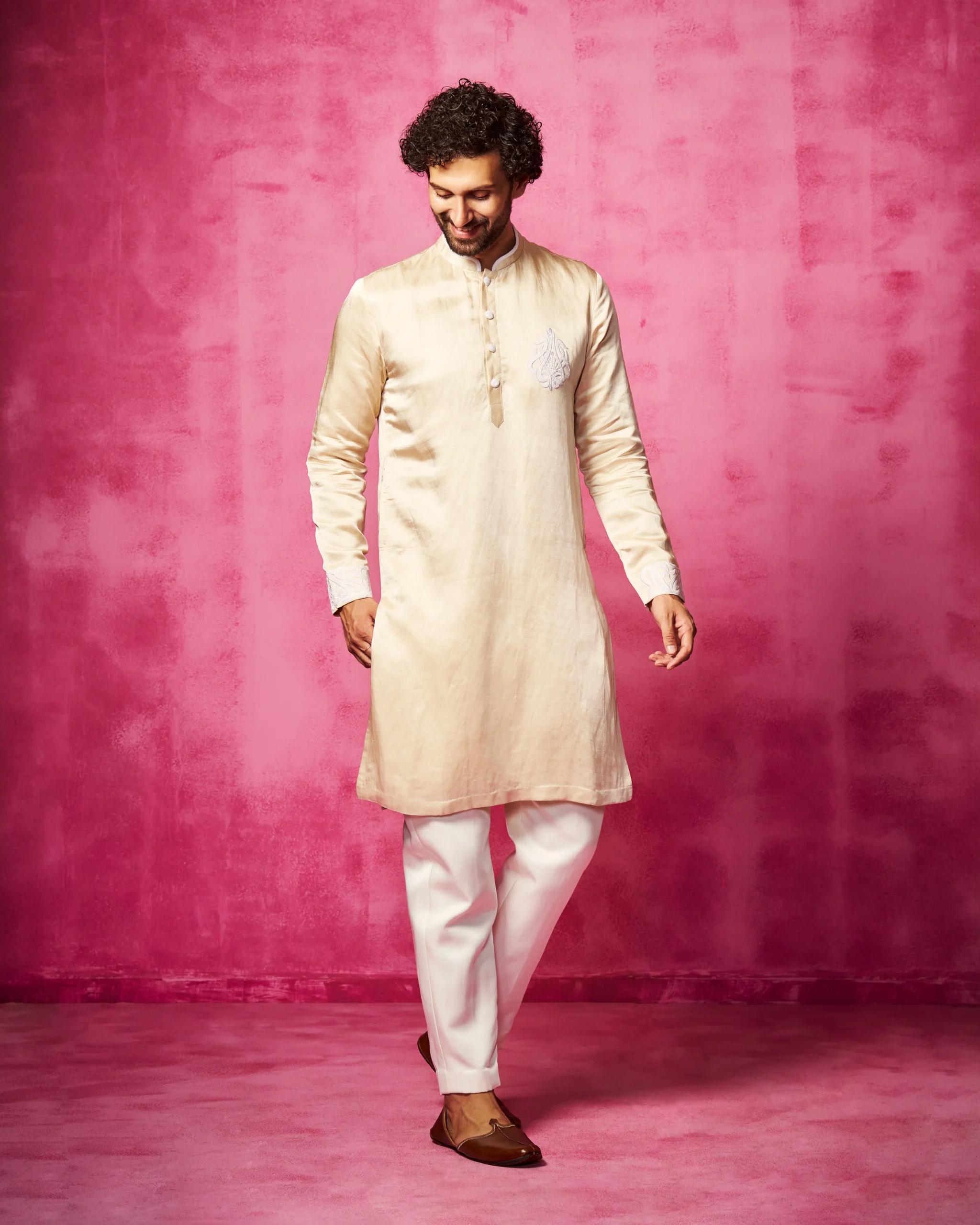 Style this ivory lehenga choli with embellished juttis or delicate sandals for a festive look. Pair it with pearl or pastel stone jewelry for a soft elegant finish. A braided hairstyle with floral clips or hair accessories along with a tiny bindi will complete the graceful traditional look for weddings and celebrations.