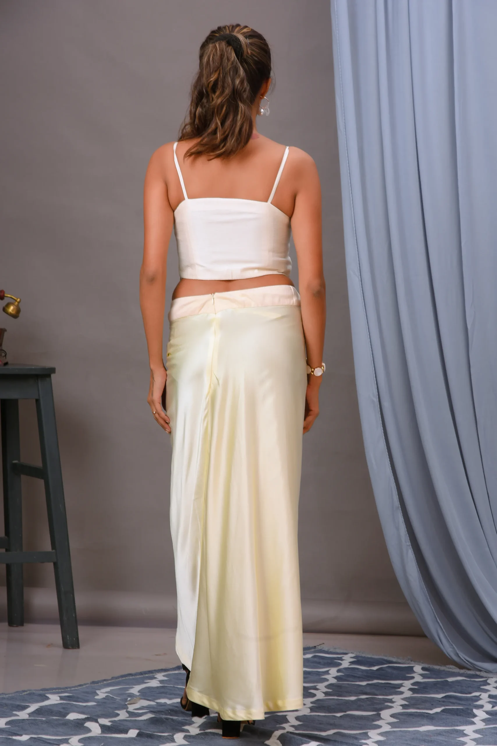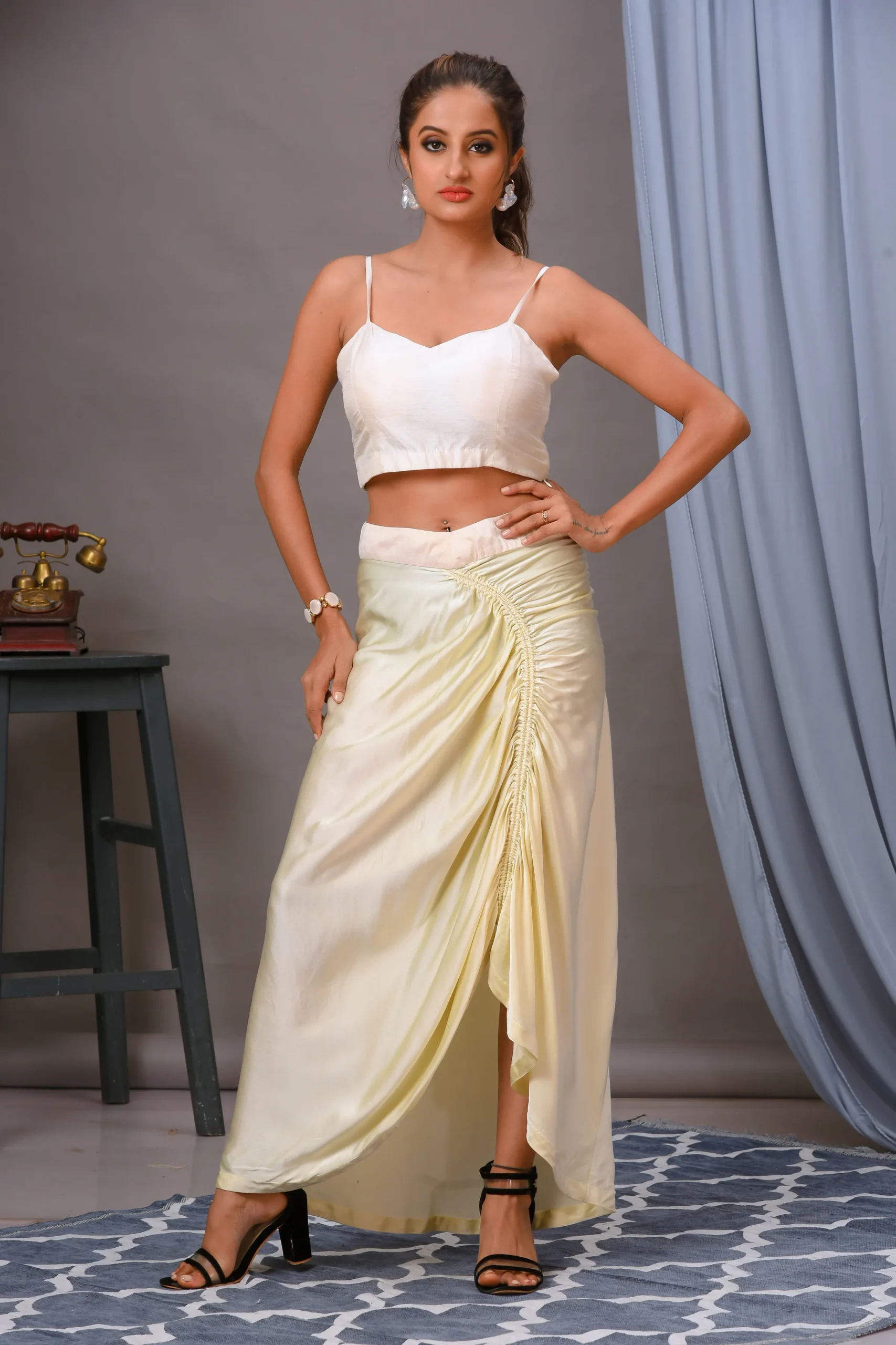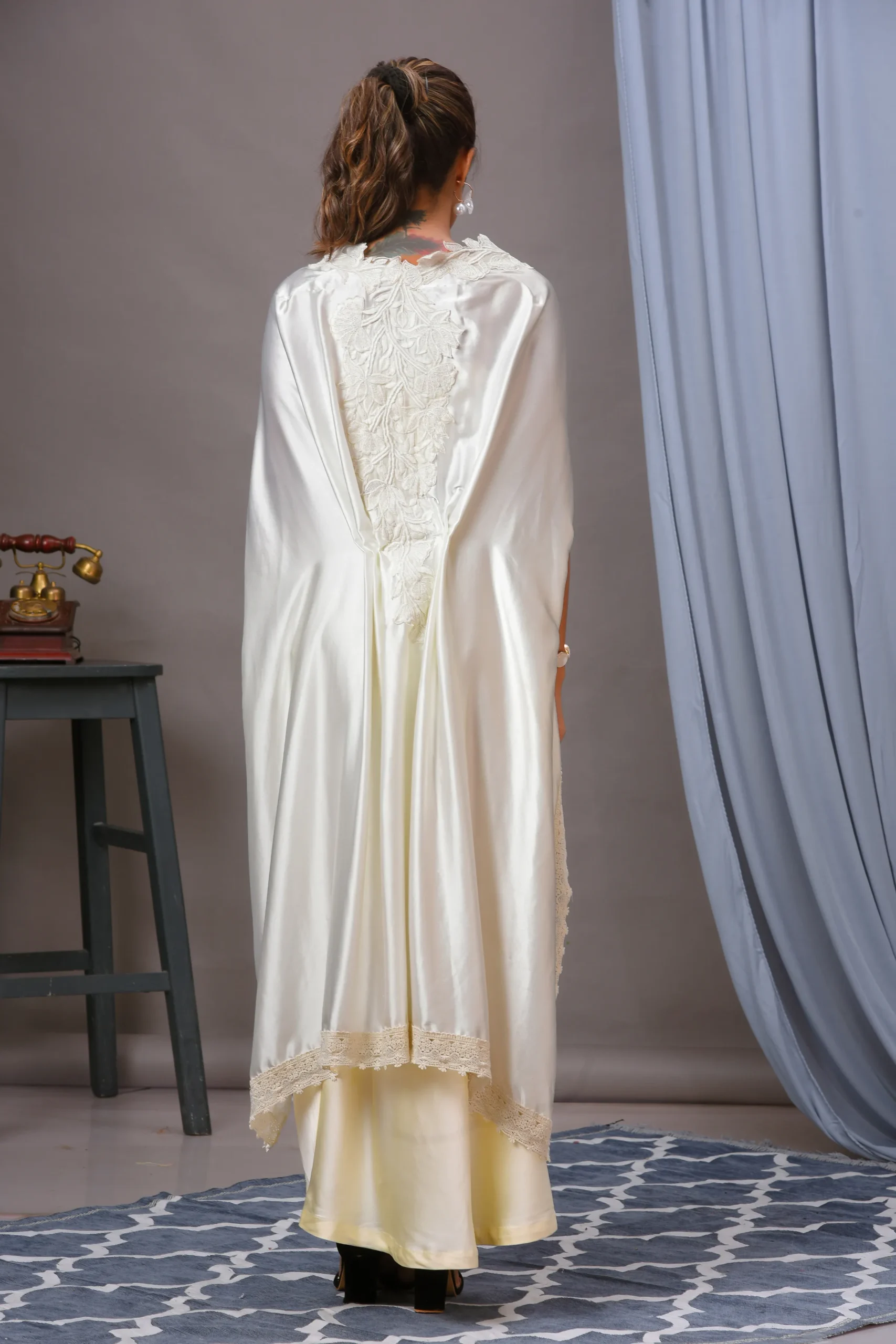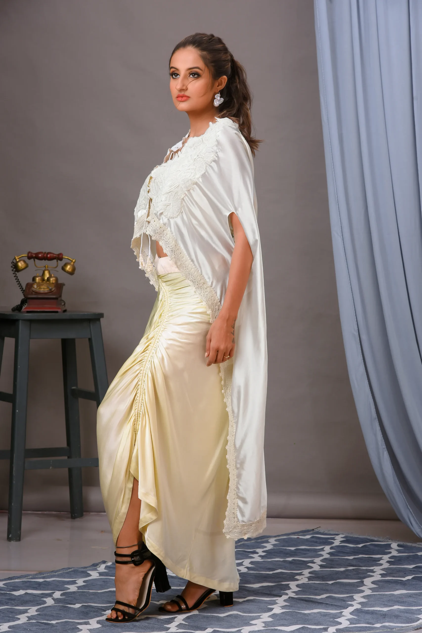 Ivory Modal Satin Embroidered Ruched Cape Skirt Set