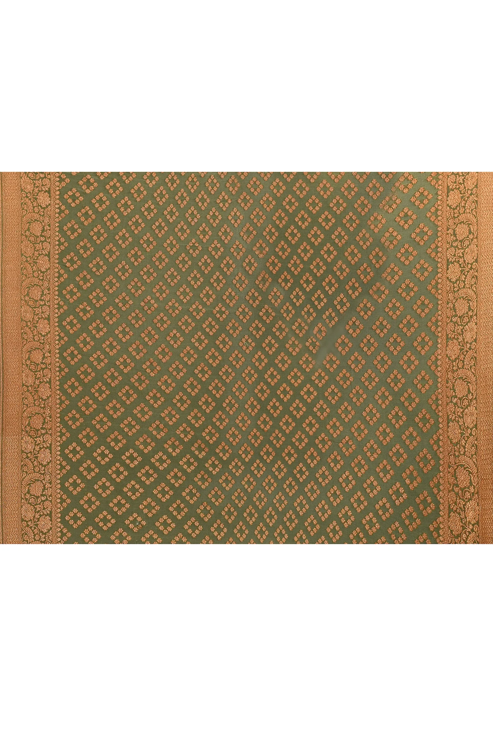 Pea Green Pure Katan Silk Banarasi Saree with Antique Gold Zari