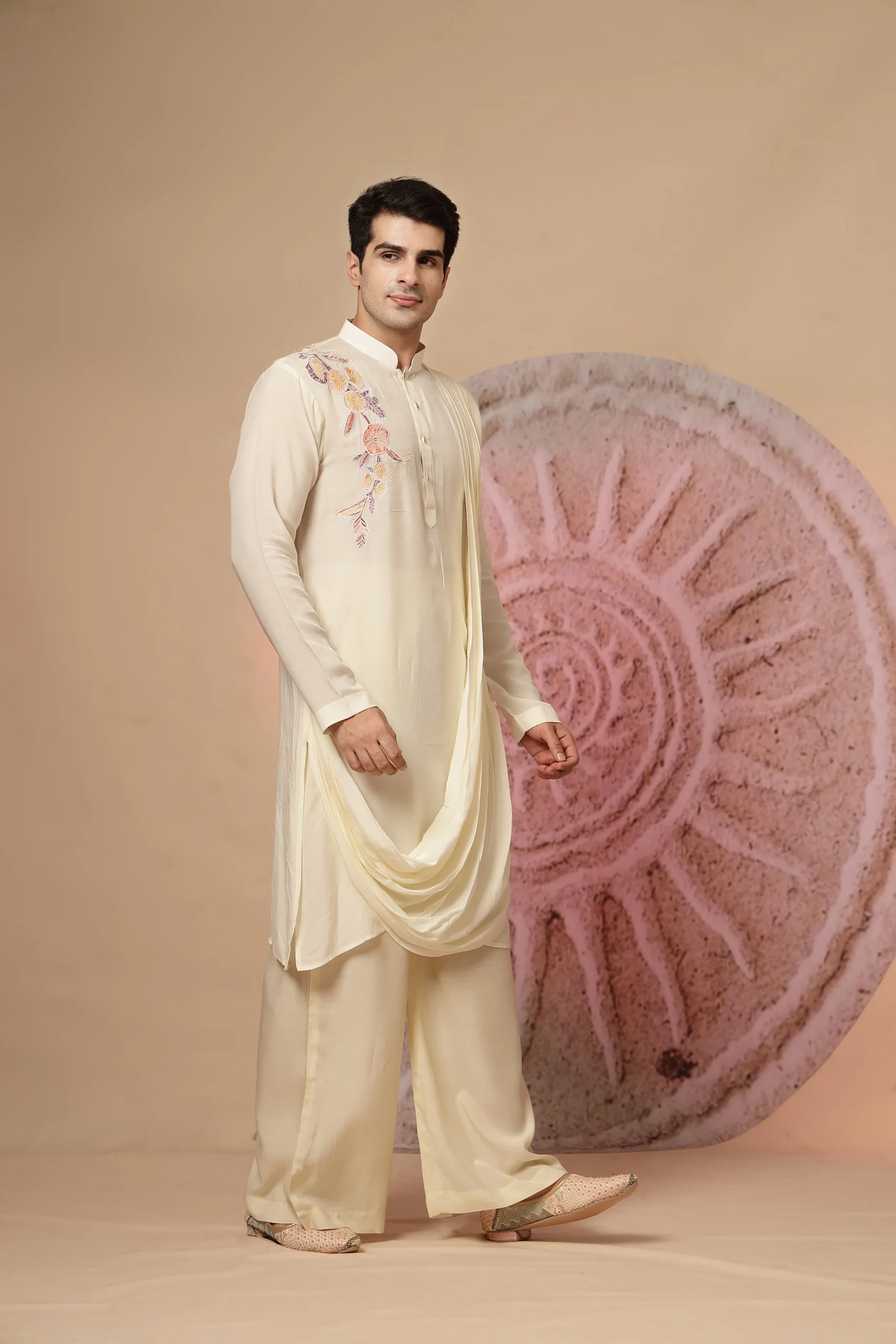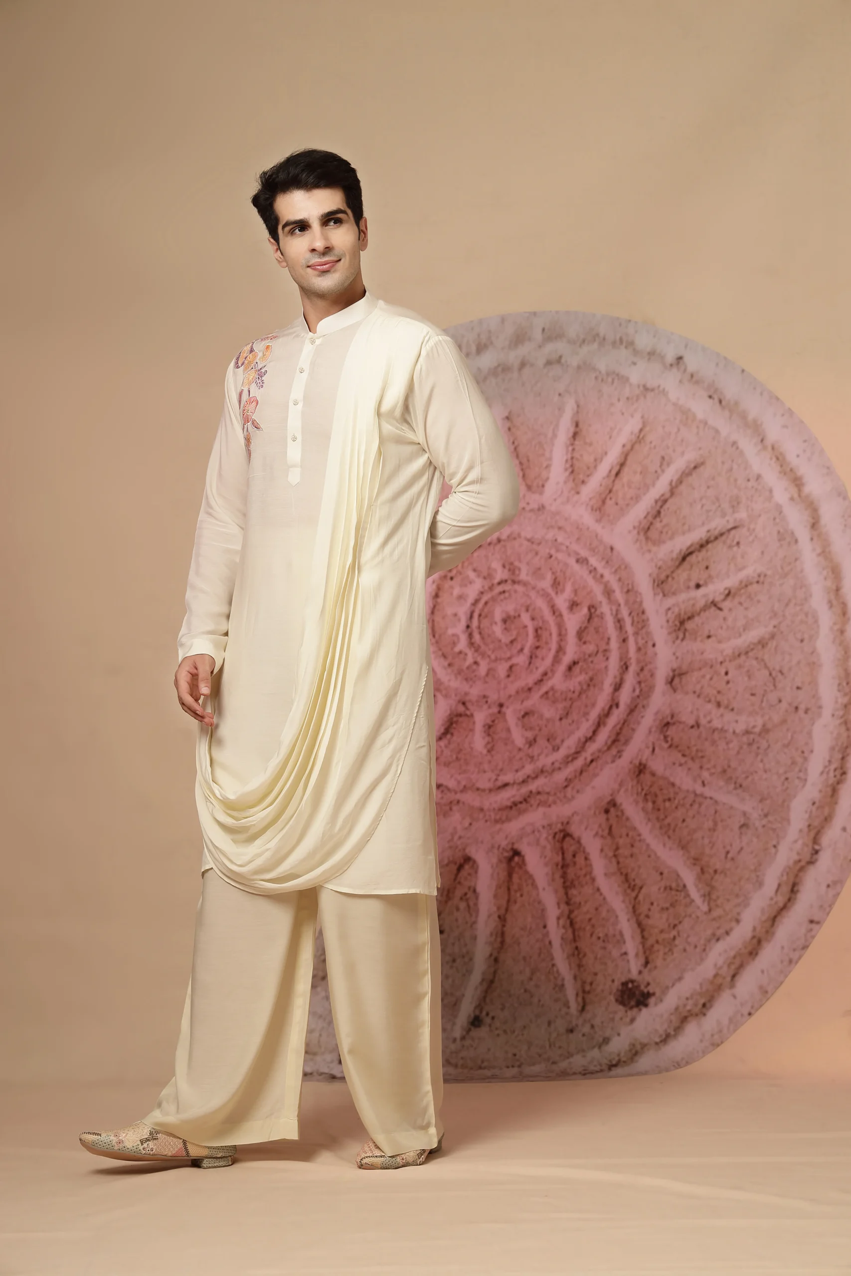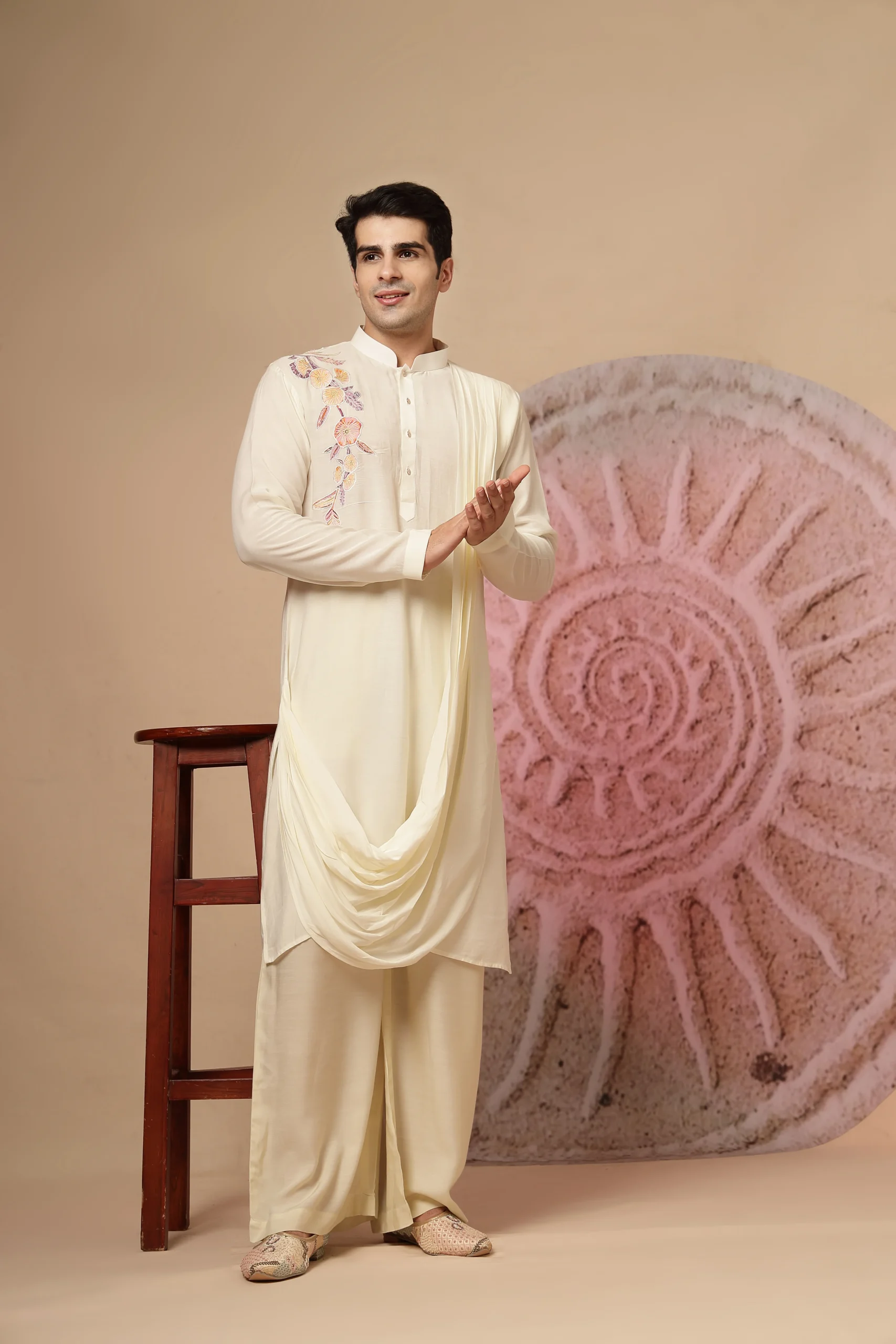 Ivory White Draped Cowl Kurta Set with Subtle Embroidery